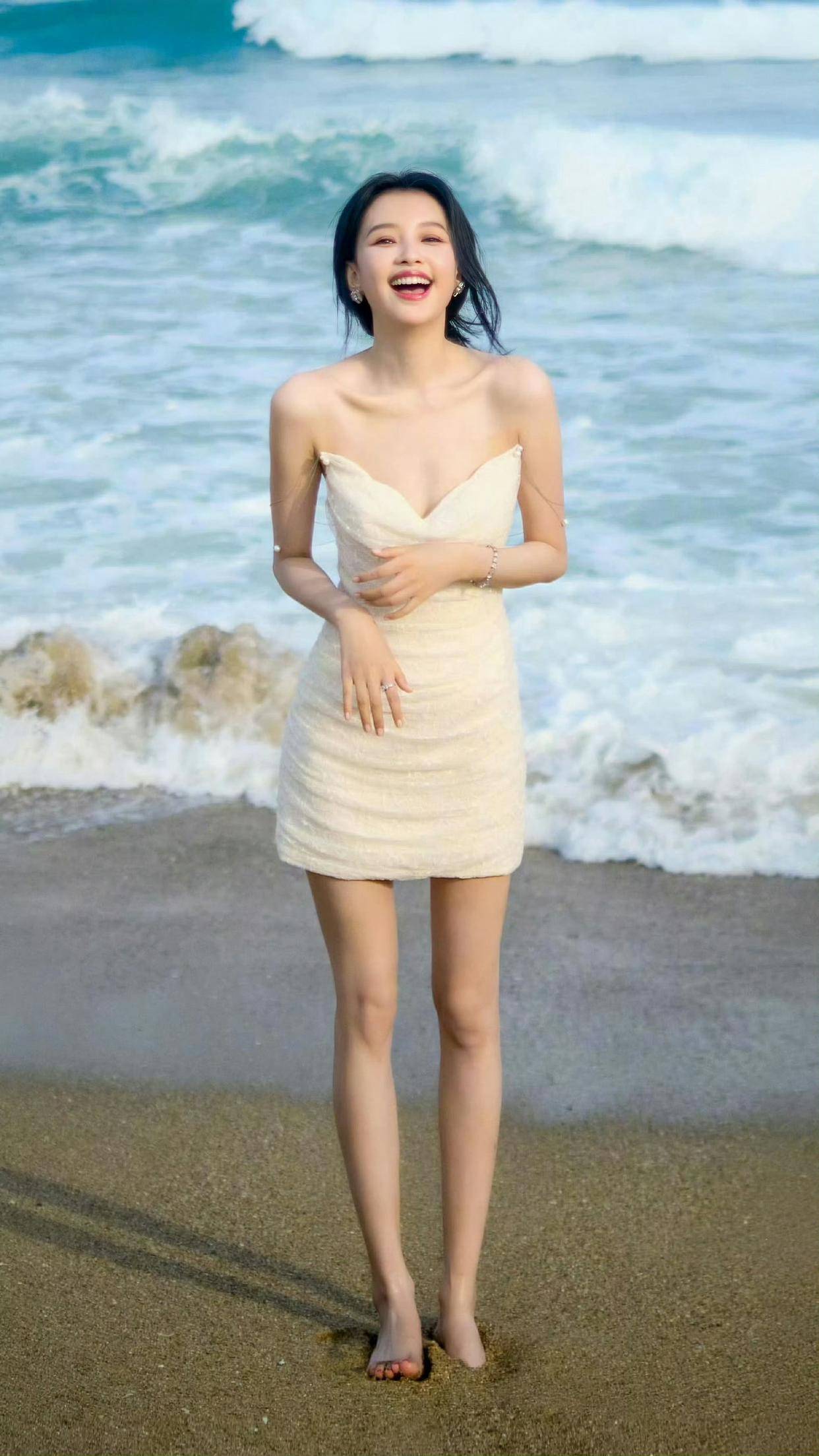 一到夏天,女『明星』️的海边『穿搭』就成了我的灵感库,『孙怡』这套米白色短裙直接让我存图 —— 抹胸款露出肩颈,收腰设计掐出腰线,裙摆短却不拖沓,配上她光脚踩沙地笑,整个人像浸在海风里的泡泡,轻盈得让人想跟着笑。这种 “无负担的美”,才是夏日『穿搭』该有的样子啊。