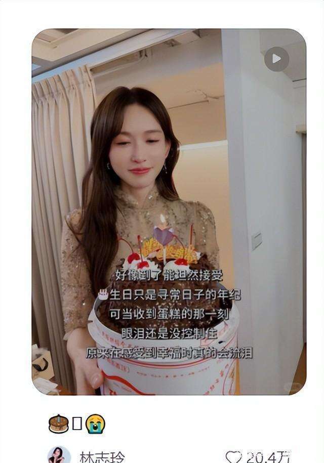 当工作团队突然端来一款精致的红叶蛋糕,放在化妆间的镜子前,『林志玲』的眼睛一瞬间充满了惊讶和感动。她的双眼泛起了泪光,紧接着泪水就顺着她的脸颊滑落。