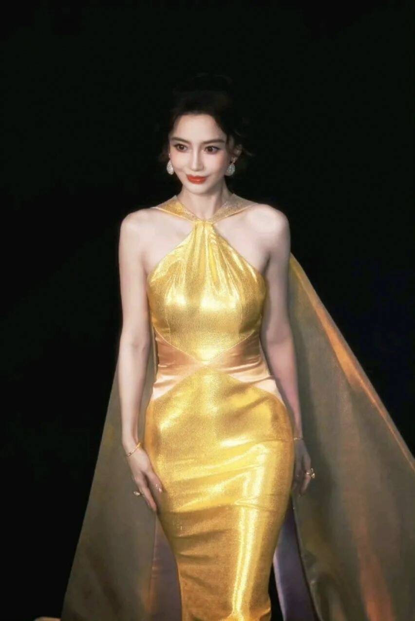 礼服的剪裁更是一绝。它紧紧贴合『Angelababy』的身形,把她那凹凸有致的身材展现得淋漓尽致。从纤细的腰肢到修长的双腿,每一处线条都被这礼服勾勒得完美无缺。尤其是那裙摆,随着她的步伐轻轻摆动,就像夜空中闪烁的流星划过,灵动又飘逸。