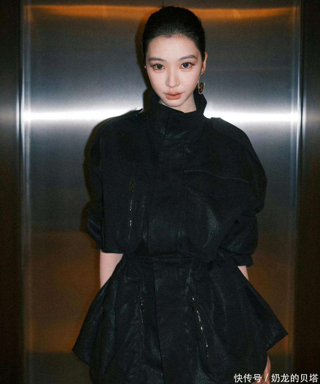 26岁的易梦玲,总能巧妙地在甜美与冷酷之间找到平衡点。例如这次的黑丝造型,她梳着利落的丸子头,脸上依旧保持着她标志性的柔和甜美神态,而身上却穿着一件带有冷感气质的黑色缎面短裙。她穿着厚底高跟鞋👠,踩在地毯上的每一步都显得优雅迷人,纤长的腿部线条被黑丝衬托得更加柔和。在拍摄花絮中,她整理头发的动作也充满了甜美与冷酷交织的张力。此前,她和胡彦斌的恋情公开时,大家还在讨论她的恋爱甜妹风格,而这一次的造型,则是她用『穿搭』回应了风格从不受限的态度。