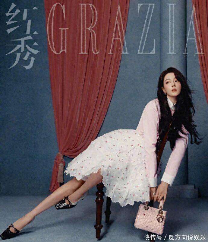 这组照片的主题是油画公主,通过将复古的画框元素融入镜头,打造出独特的视觉效果。垂下的红色帘幕仿佛19世纪油画中常见的深色背景,柔软的纱布装饰让光线显得温暖柔和。而她身穿的『Dior』26新款服装,则是这幅油画中的点睛之笔:蕾丝裙摆展现了轻盈的柔美,缎面面料的光泽感让整体效果更显润泽,没有现代礼服那种尖锐的设计感,反而有着油画中常见的温润质感,甚至连领口的褶皱,细腻得仿佛是画笔轻描过的痕迹。