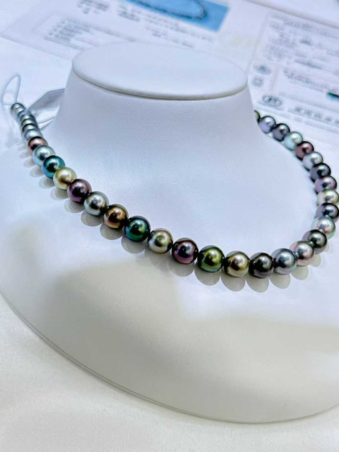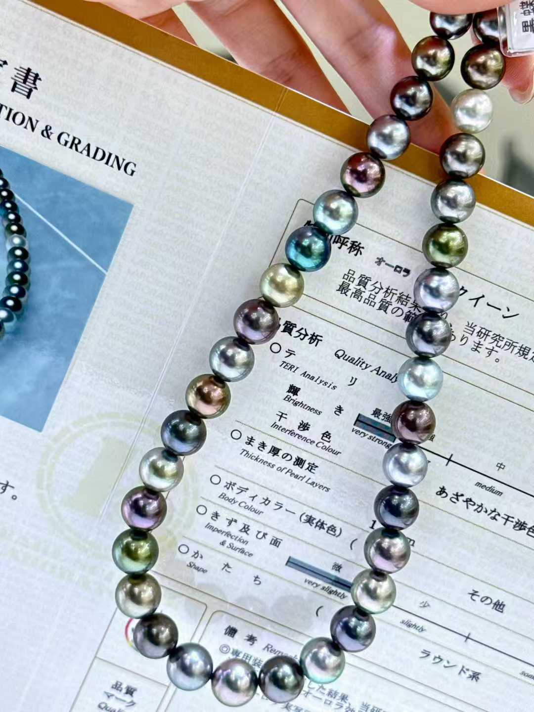 大溪地混彩 真科研SS“黑蝶皇后”尺寸:8.1-10.9mm 醒目的跳色搭配 正圆强光极细微瑕疵孔雀蓝、薰衣草紫、银灰色等等一应俱全上身气质瞬间翻倍 又美又酷简直了皮层厚度1.2mm 一对一