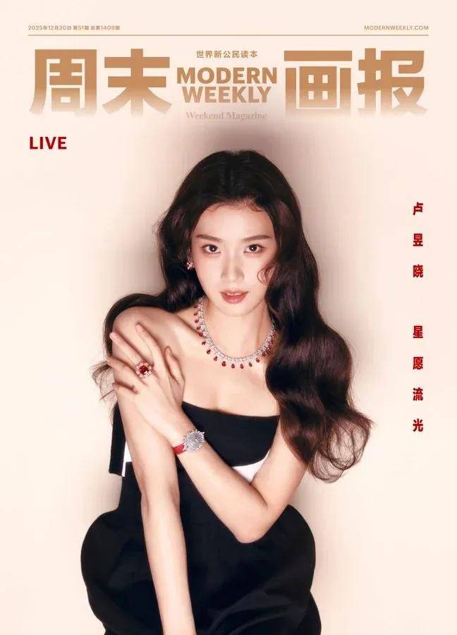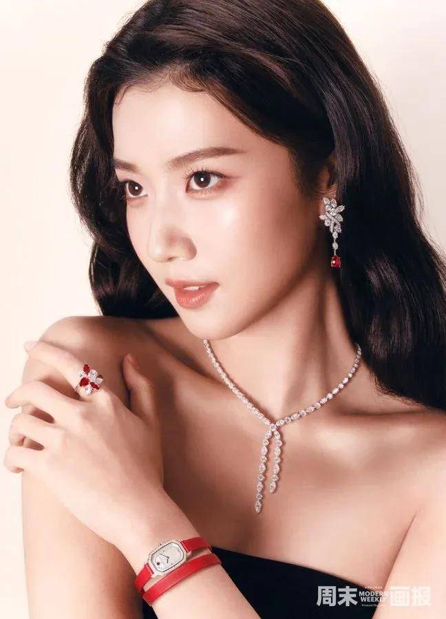 像是最近登上《周末画报》封面,晓晓一身SHUSHUTONG黑白撞色连衣裙👗,佩戴HarryWinston海瑞温斯顿Princess红宝石钻石高级珠宝项链、Winston Cluster红宝石和钻石耳环与Winston Candy红碧玺戒指💍,腕间的Ultimate Emerald Signature高级珠宝腕表同样吸睛,与身旁“星愿流光”的标题交相呼应。