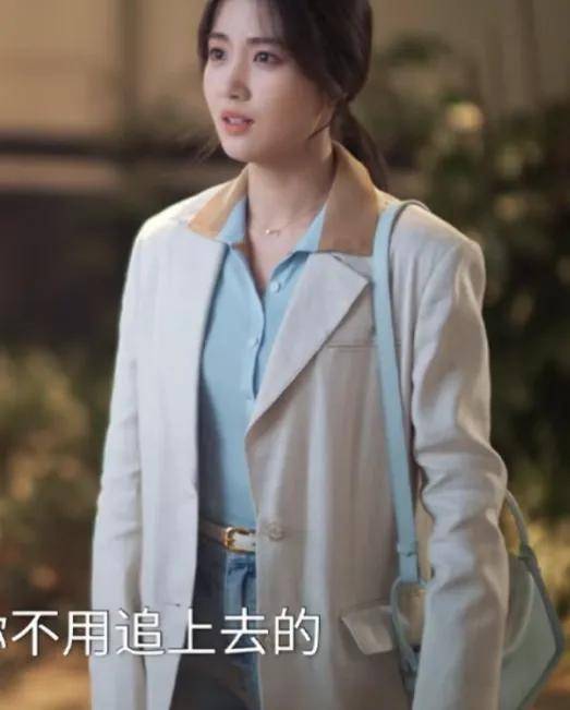 剧中也是Miu系女孩,REVAN西装外套🧥搭配同品牌半身长裙👗和BREADTREE短靴,内搭UZZO上衣,佩戴Onchic耳饰与项链,棕色MIU MIU包包与整身保持色调一致,干练又不简单。