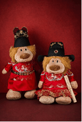 本次限量公仔共推出两款极具寓意的大号预订款及一款中号限量款:大号预订款 - 龙马精神·福禄双全:狮子头戴象征尊贵的明代翼善冠,身着团龙柿蒂纹,寓意“事事如意”;纹样中跃出的骏马与底边奔腾的祥云奔马纹相呼应,祝愿“龙马精神”,事业腾飞。织造用料考究,融合纯金线、彩金线、幻彩螺钿线及仿鸵鸟毛等珍贵材料与桑蚕丝交织,璀璨夺目。