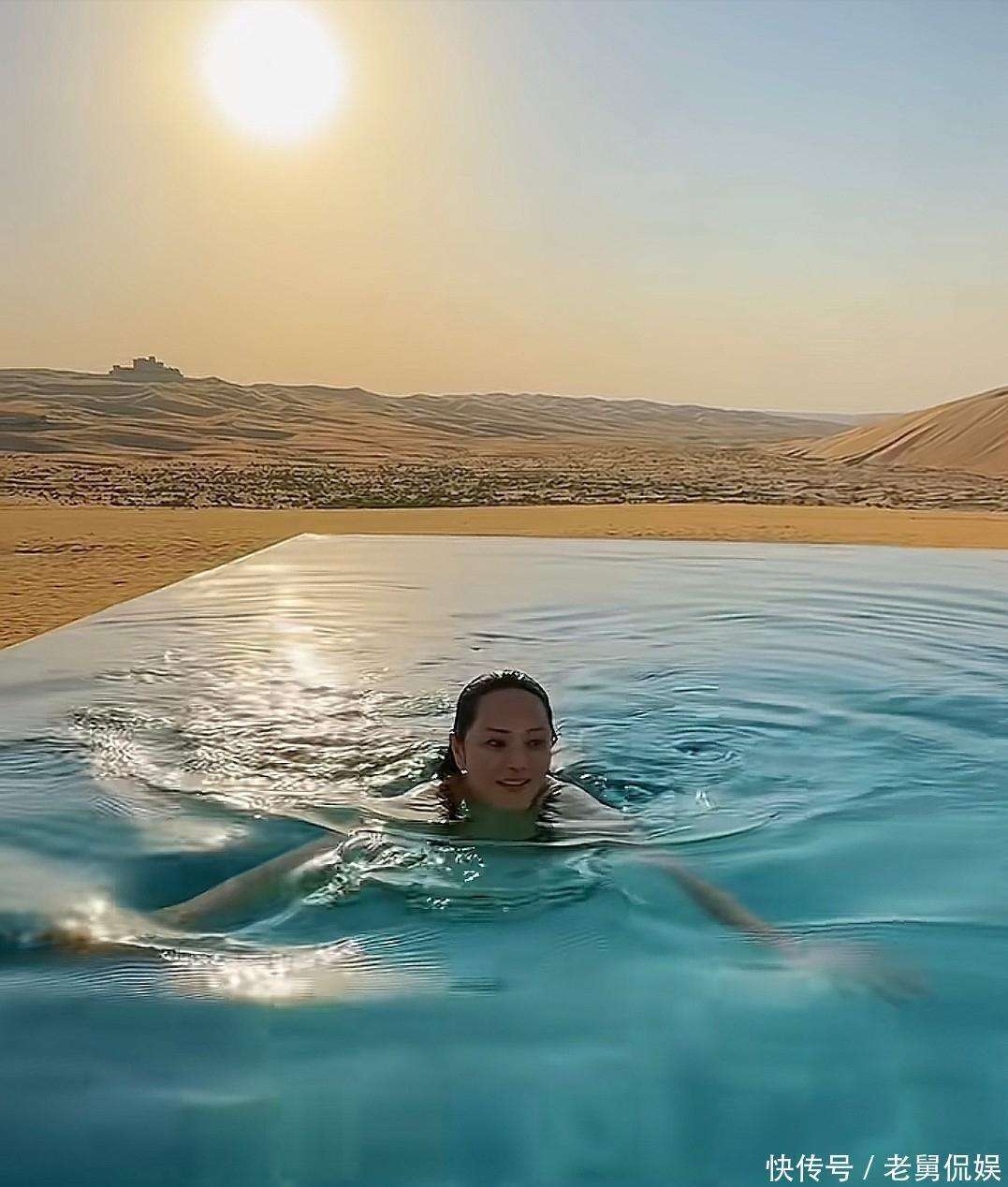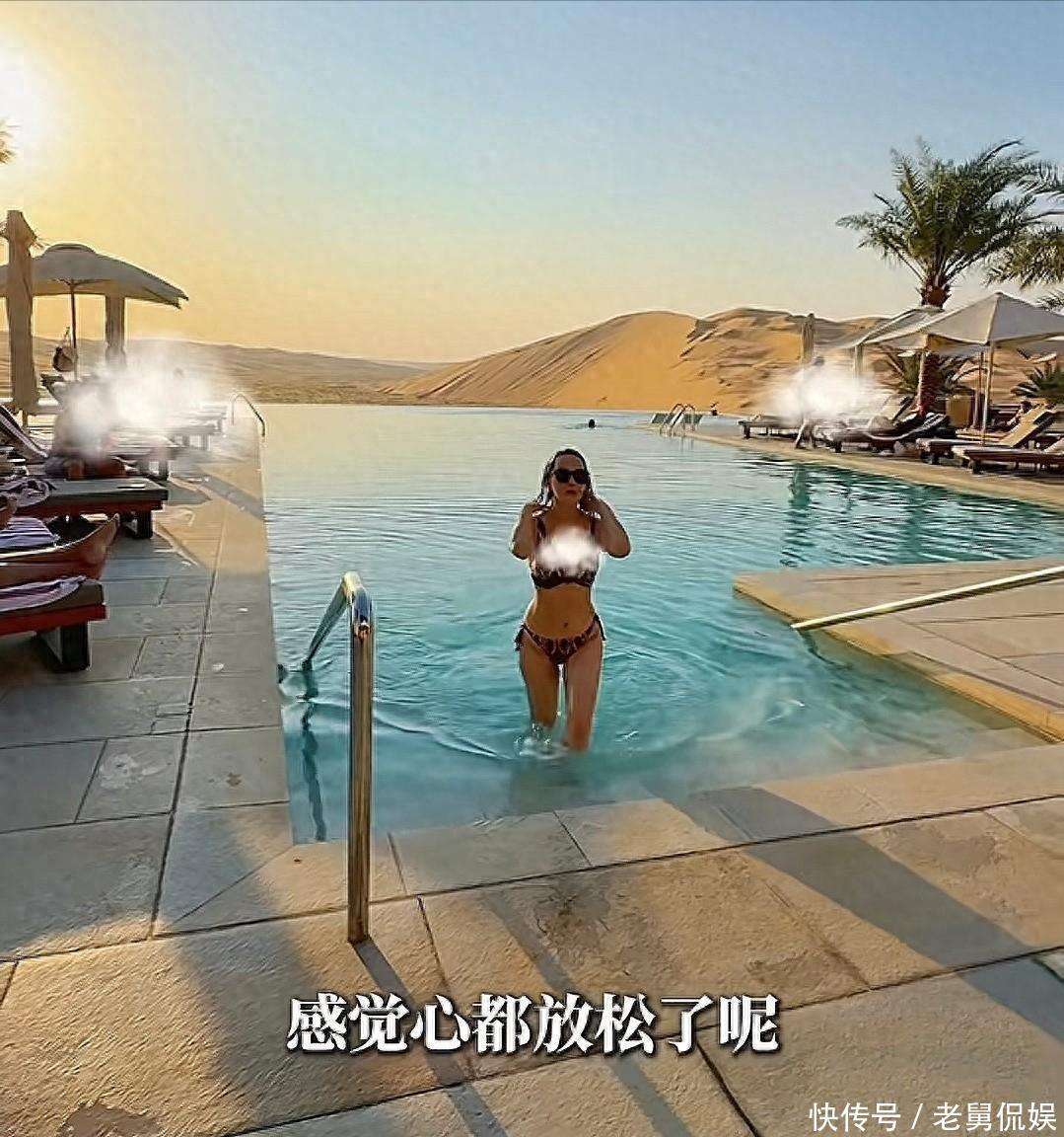 当天流出的几张生图中,『伊能静』的状态也非常出色。她穿着一件蓝色短袖,搭配舒适的平底鞋🥿,身姿笔挺,走路时裙摆轻轻摇曳,完全看不出她已经57岁。和『秦昊』同框时,两人时不时低头交谈,『秦昊』看着她的眼神充满宠溺,还主动帮她整理被风吹乱的头发,那份小小的关怀在无声中展现了他们之间的深厚感情。此次旅行的亮点之一,毫无疑问是在沙漠泳池的体验。出发前,『伊能静』特意穿上了一件带蓝色头纱的服饰,笑着对镜头说:入乡随俗嘛,而且这个造型特别修饰脸型,拍出来一定很好看。来到泳池边,看到那一池碧绿的水和金黄的沙漠相映成趣,她立即换上了早就准备好的豹纹露背泳衣——简约的吊带上衣搭配高腰泳裤,完美地勾勒出她紧致的腰腹线条,马甲线若隐若现,肩背线条流畅,皮肤在阳光下散发着健康的光泽。 下水之前,『伊能静』还对着镜头调皮地比了个耶,语气轻松:虽然年纪不小了,但还是想试试在沙漠里游泳的感觉,真的很特别。『秦昊』则穿着黑色短袖泳裤,全程守在泳池边,一边举着相机📷️不停地为她拍照,眼神中满是赞赏。女儿米粒则穿着粉色的连体泳衣,戴着小泳圈在浅水区玩耍,『伊能静』一游到岸边,米粒立刻扑过去抱住她,画面温馨又可爱。然而,最黏的还是爸爸『秦昊』。『秦昊』本就是出了名的女儿奴,陪着米粒玩耍时,耐心十足,甚至连『伊能静』都忍不住调侃道,『秦昊』在米粒身边仿佛有用不完的耐心,这与他平时在荧幕上展现的形象反差巨大。一家五口在泳池边嬉戏玩耍,阳光、沙漠、泳池与和睦的家人共同构成了一幅温馨惬意的画面。网友们纷纷在评论区留言,既有人羡慕她57岁依然保持如此好状态,也有赞美她高情商的婆媳相处之道,还有人感慨这家人幸福美满的模样。