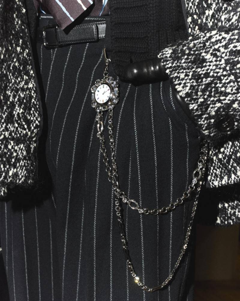 这股打破常规的戴表风潮,灵感源自上世纪的Dandy风格,那是怀表盛行的黄金年代,也是男装极致考究细节的时期。Dolce&Gabbana并未止步于复刻历史,而是以复古不羁的态度重塑经典。DG的巧思在于,将怀表的佩戴逻辑拆解重组,让腕表脱离口袋与手腕,以更灵活的方式融入当代『穿搭』,既保留复古韵味,又契合当下年轻人对个性表达的追求。
