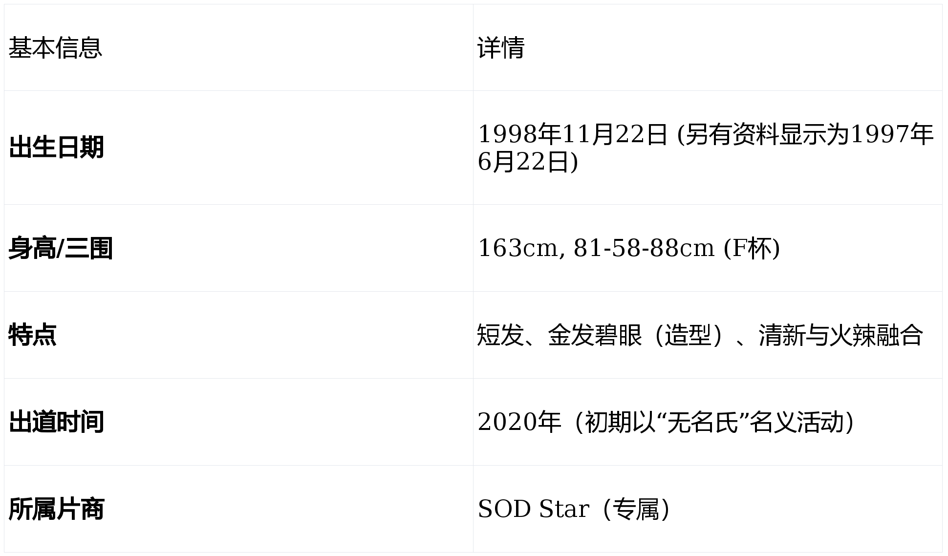 1.独特的出道方式:她的出道方式颇具特色。片商SOD先让她以“名前はまだない(无名氏)”的身份亮相引发关注,随后才正式以“夏目響”之名出道,这种营销策略让她获得了两次出道曝光的机会。