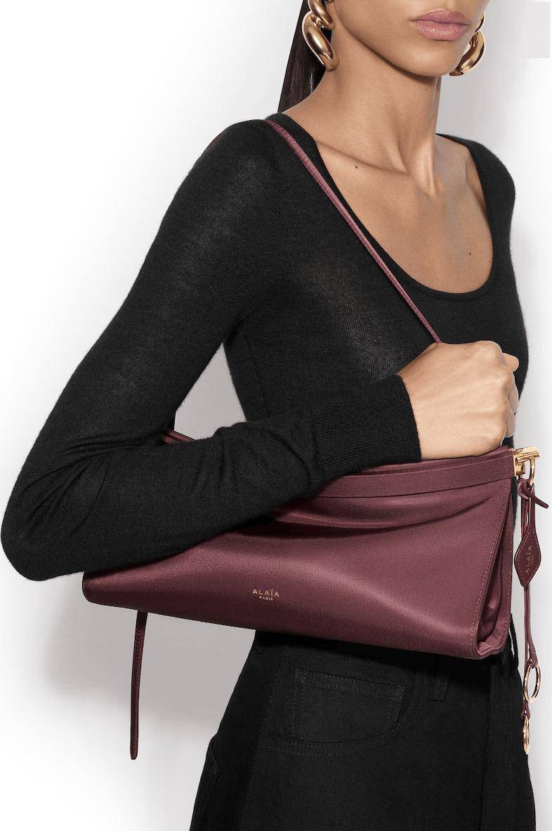 ALAÏA的LE CLICK是品牌包袋家族里的经典轮廓之一。它的横向造型在视觉上显得优雅而开阔,同时保留了ALAÏA标志性的剪裁感和雕塑气质。