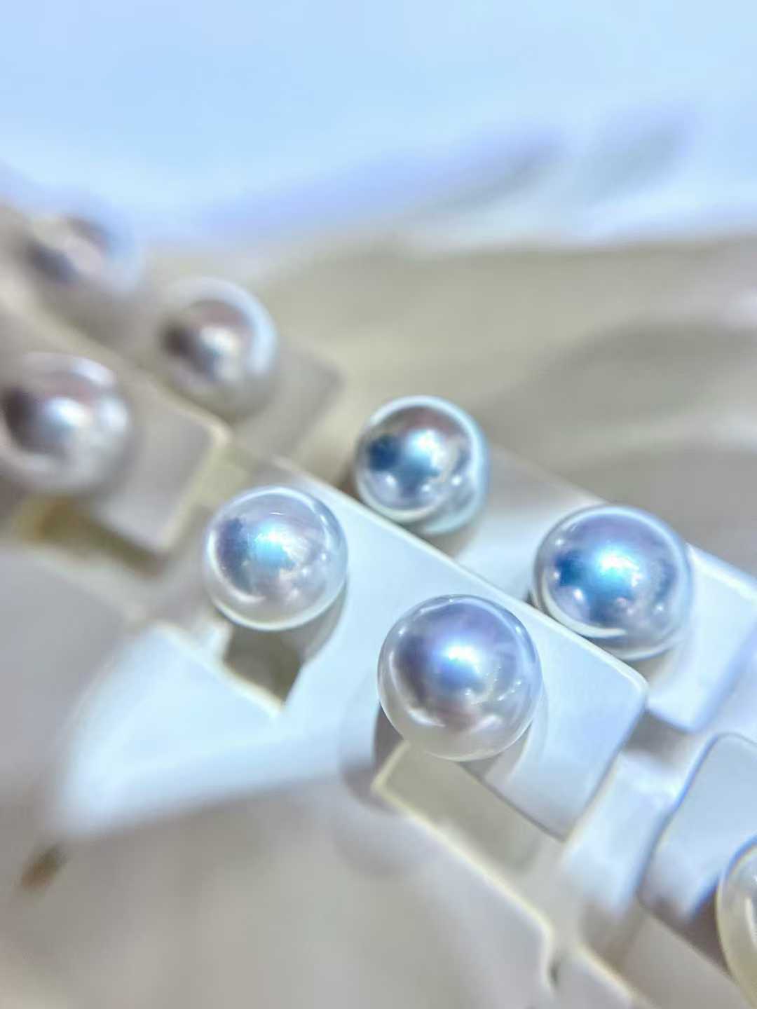 新配对澳白素钉🆕珍珠耳钉想一步到位,那就选澳白吧!9-10mm小尺寸日常好驾驭 银冷调好光泽近圆微瑕疵上耳不明显 近正圆面干净,底部微瑕疵18k白金耳针镶嵌