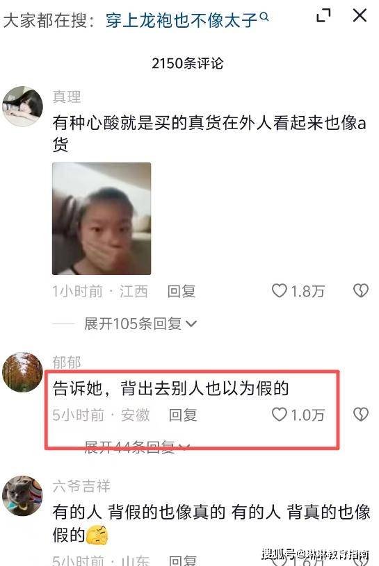 就像网友们劝告家长的那样,穷人穿上龙袍也不像太子,即便是真包,背在你女儿身上也像假货,这个钱花出去根本没有意义,其实家长也明白这个道理,多贵的包包又能怎么样呢?