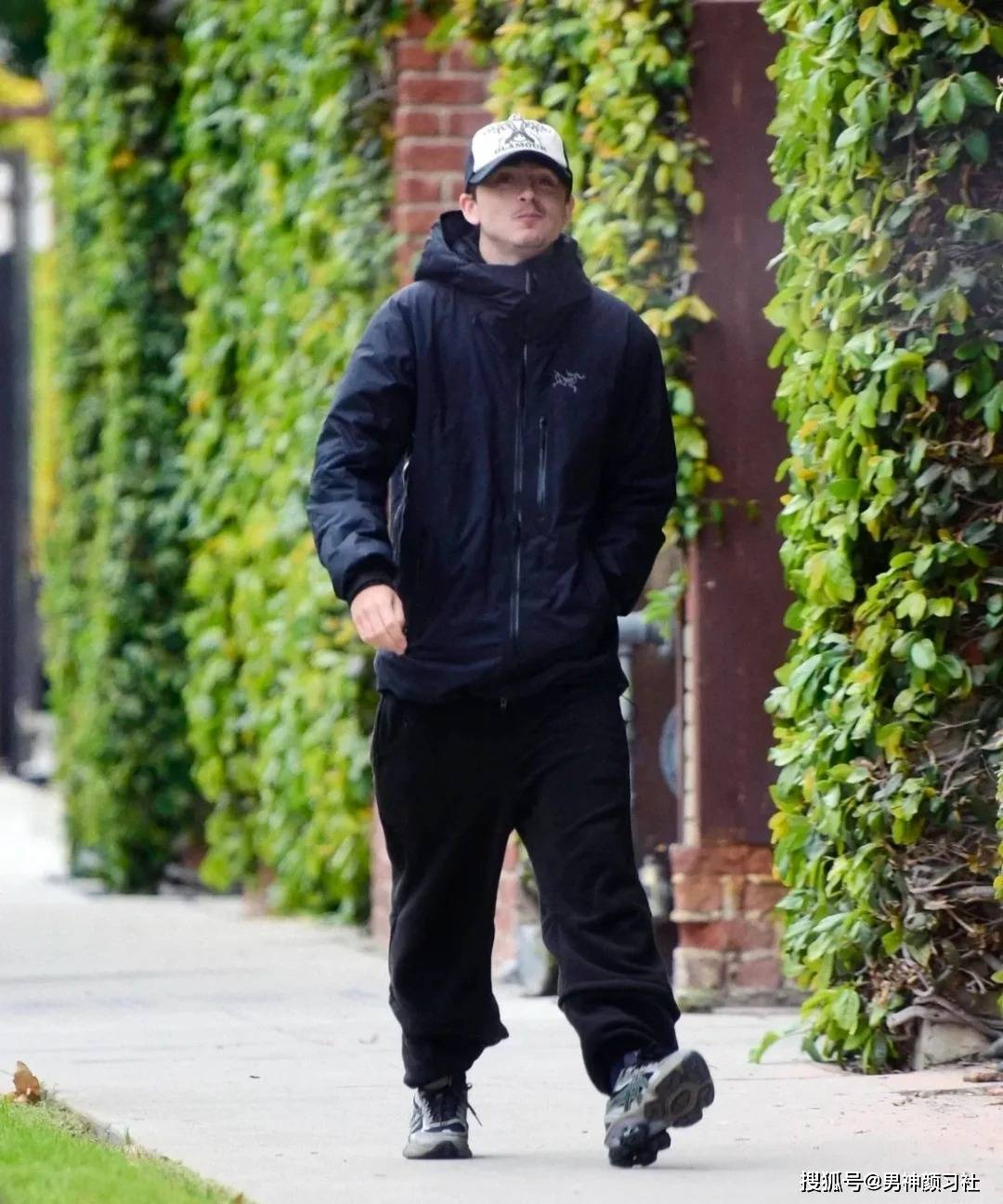 领口处露出卫衣的帽子,层次感瞬间拉满。下半身配上一条深色工装裤,脚踩一双山系徒步鞋,这种随时准备去山野,但在城市也时髦的姿态非常迷人。