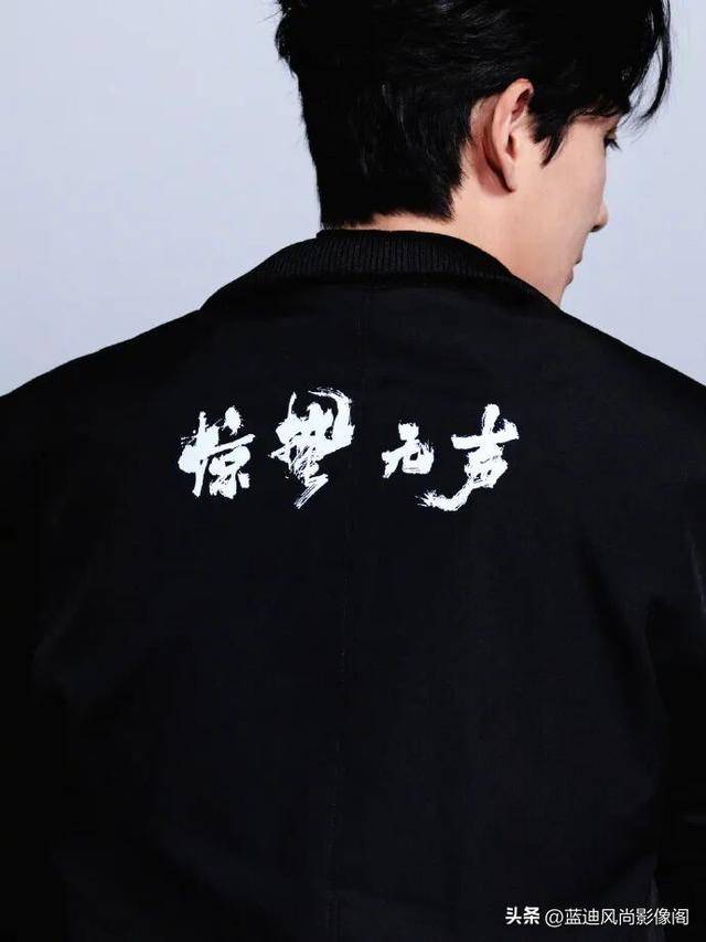 衣长刚好卡在腰线位置,不压个子、不破坏比例,哪怕是全黑造型,也不会显得沉闷臃肿。最妙的是两处细节,直接让这件衣服有了灵魂:一处是后背的 “惊蛰无声” 书法字体,胸前的电影小字标识,没有夸张的品牌 logo,却把路演的核心 —— 作品,放在了最显眼的位置,让造型完全为作品服务;另一处是袖口的一抹红色点缀,在全黑的造型里悄悄跳出视觉亮点,不突兀、不抢戏,却打破了全黑的沉闷,添了几分新春的氛围感,分寸感拿捏得恰到好处。