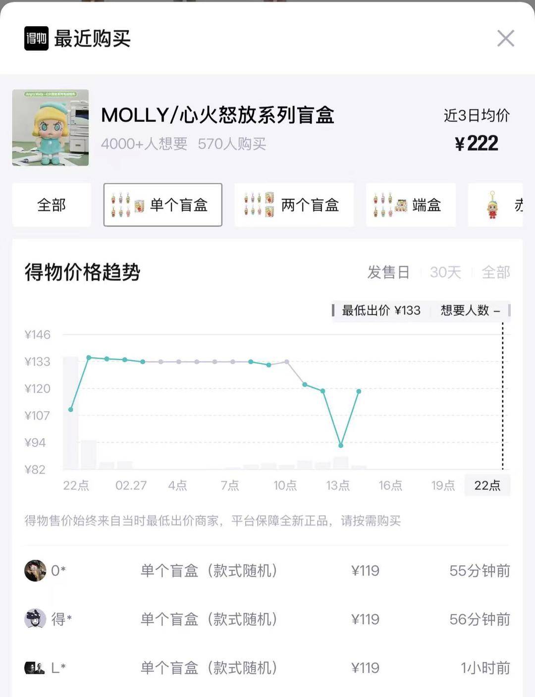得物app上,新品盲盒溢价明显