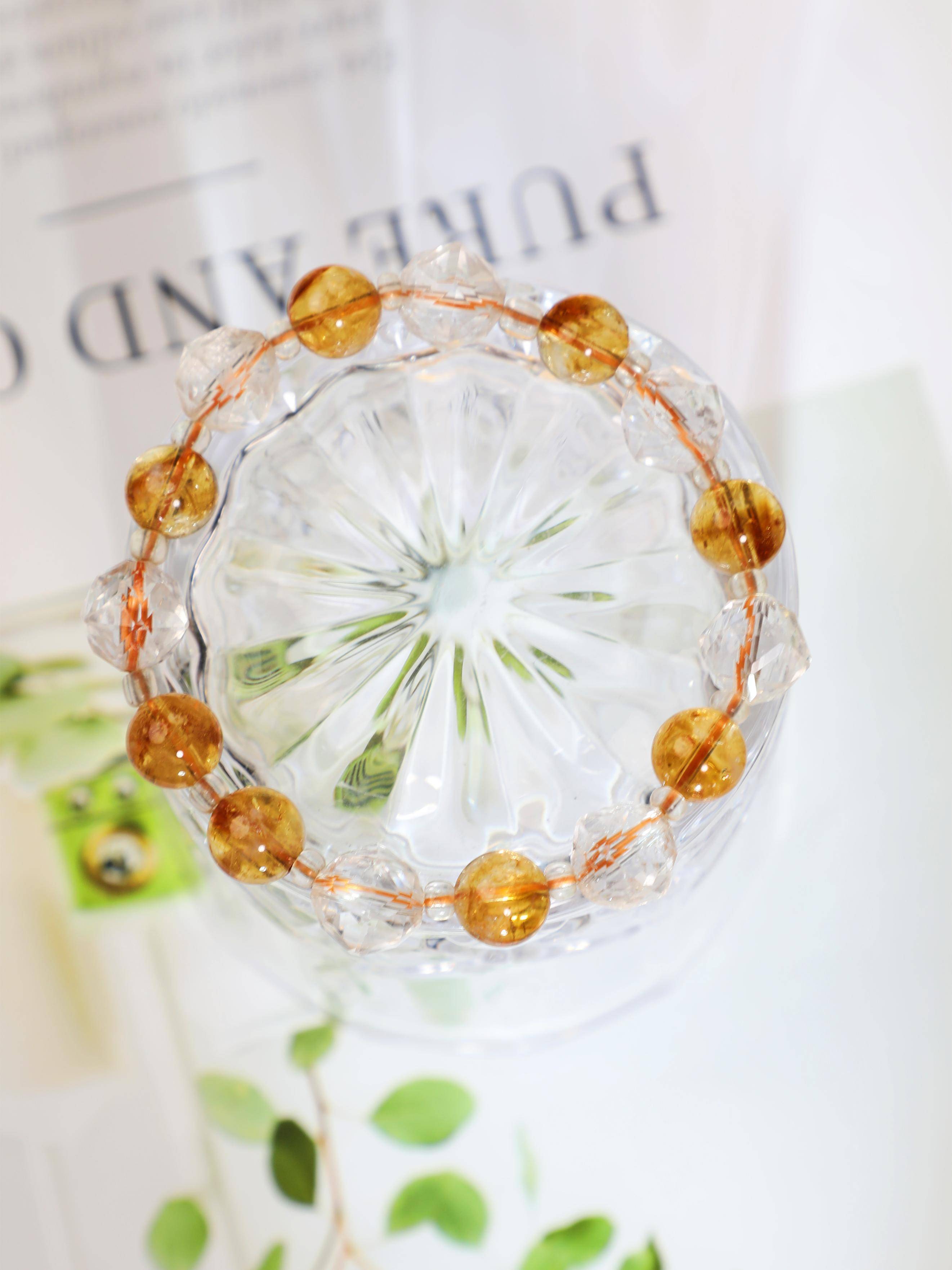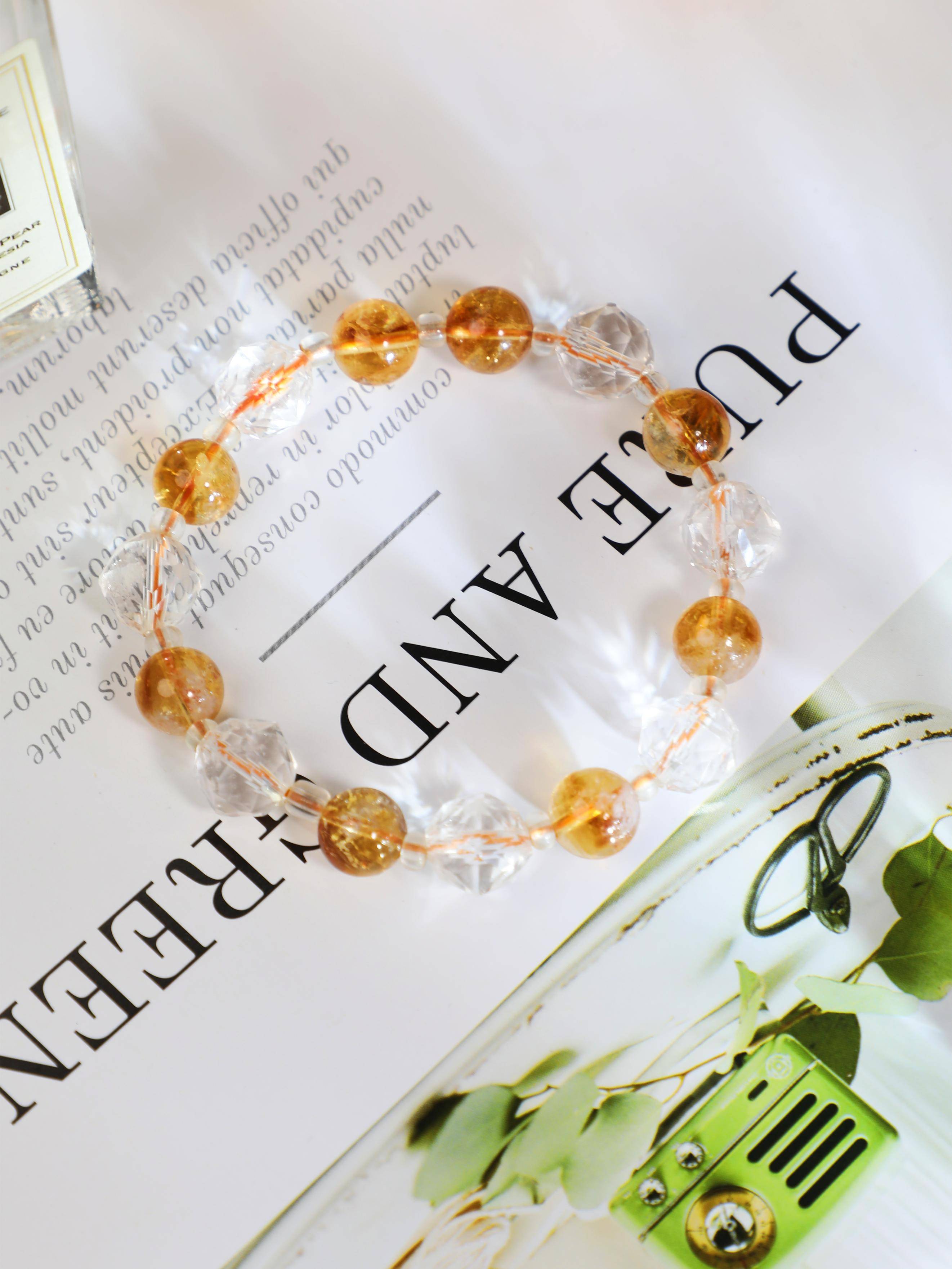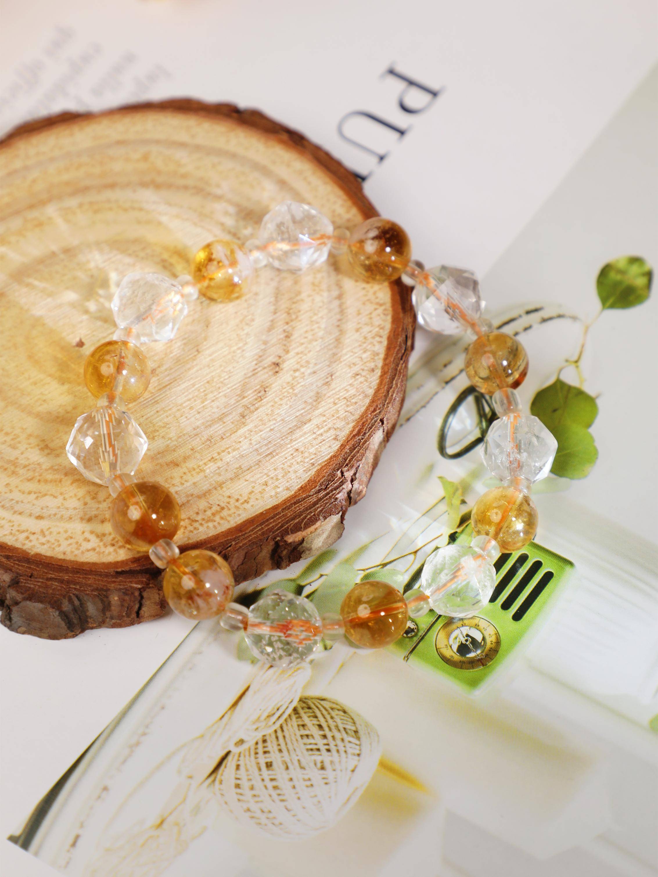 黄水晶+白水晶的搭配——像把晨曦云河戴在了手上!