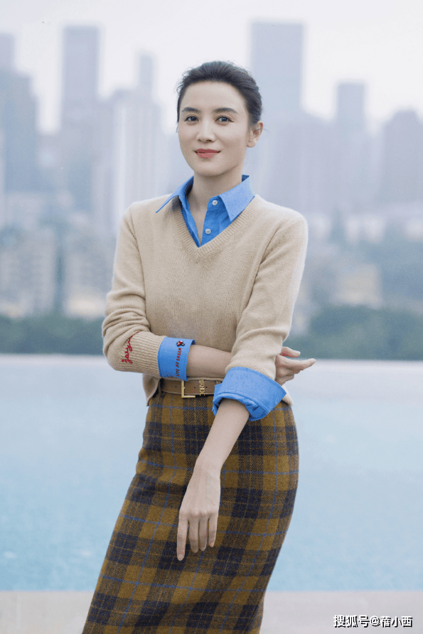 这种衬衫叠穿『针织衫』的搭配,是职场女性♀️初春通勤的“教科书”,把知性与精致刻进了细节里,她用浅卡其色V领『针织衫』叠穿蓝色衬衫,再搭配棕黄格纹半身裙,色彩与层次的平衡堪称完美。浅卡其色温柔低调,蓝色作为提亮色,从领口和袖口露出一抹亮色,能够瞬间打破大地色系的沉闷,让整体造型鲜活起来。