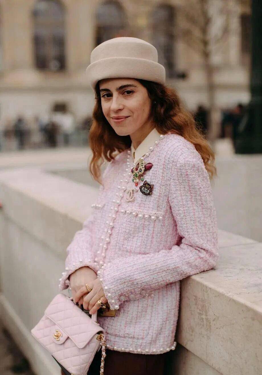 没有疏离感的冷艳,只有与生俱来的温婉矜贵,粗花呢是标志性单品,细腻肌理泛着柔和微光,软糯有质感,完美包裹春日身形。