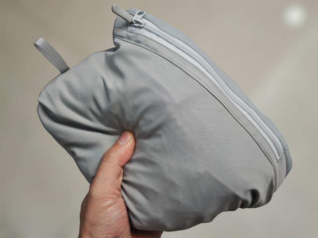 左侧口袋还自带收纳功能,将衣服折叠后,能轻松收纳成一个精致的小手包,体积小巧,通勤、差旅时随手塞进包里,随取随用,兼顾便携与仪式感。
