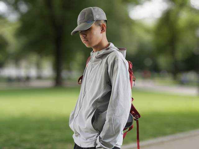 细节设计兼顾实用性与颜值:微弧小帽檐设计利落不突兀,既能有效遮挡头顶与额头的『紫外线』,避免阳光直射眼睛,又不会像大帽檐那样显得笨重,日常『穿搭』毫无违和感。