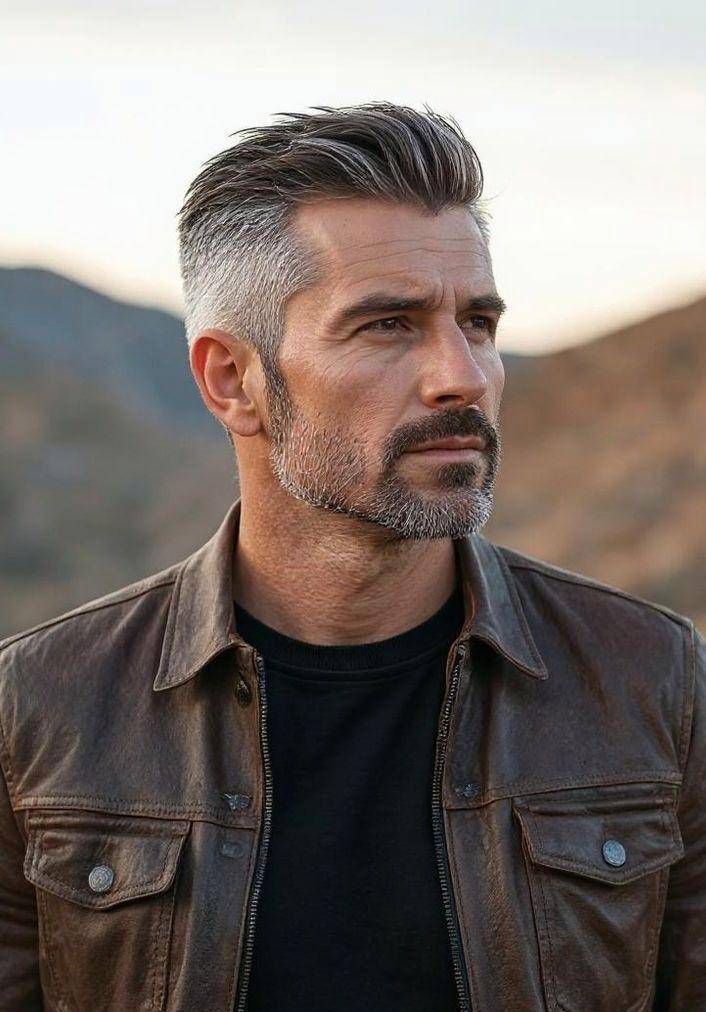 银灰发色在蓬松发丝间呈现出通透的质感,弱化了成熟男性♂️的严肃感,增添活力与亲和力,让整体造型更显年轻时尚。日常搭配休闲装、夹克等服饰,轻松拿捏简约高级的日常风格,适合追求随性舒适、不愿被造型束缚的男士。