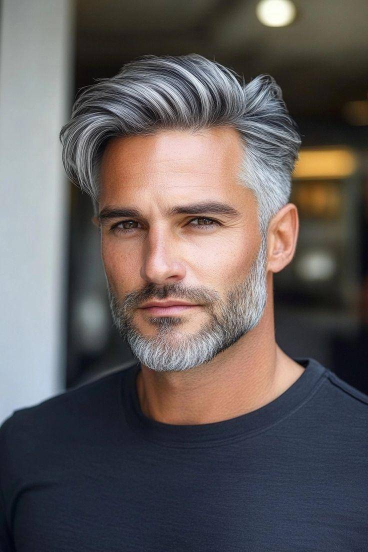 相较于传统黑发,银灰发色更具质感,能提升整体造型的精致度,弱化岁月痕迹,让男士看起来精神饱满、年轻有型。