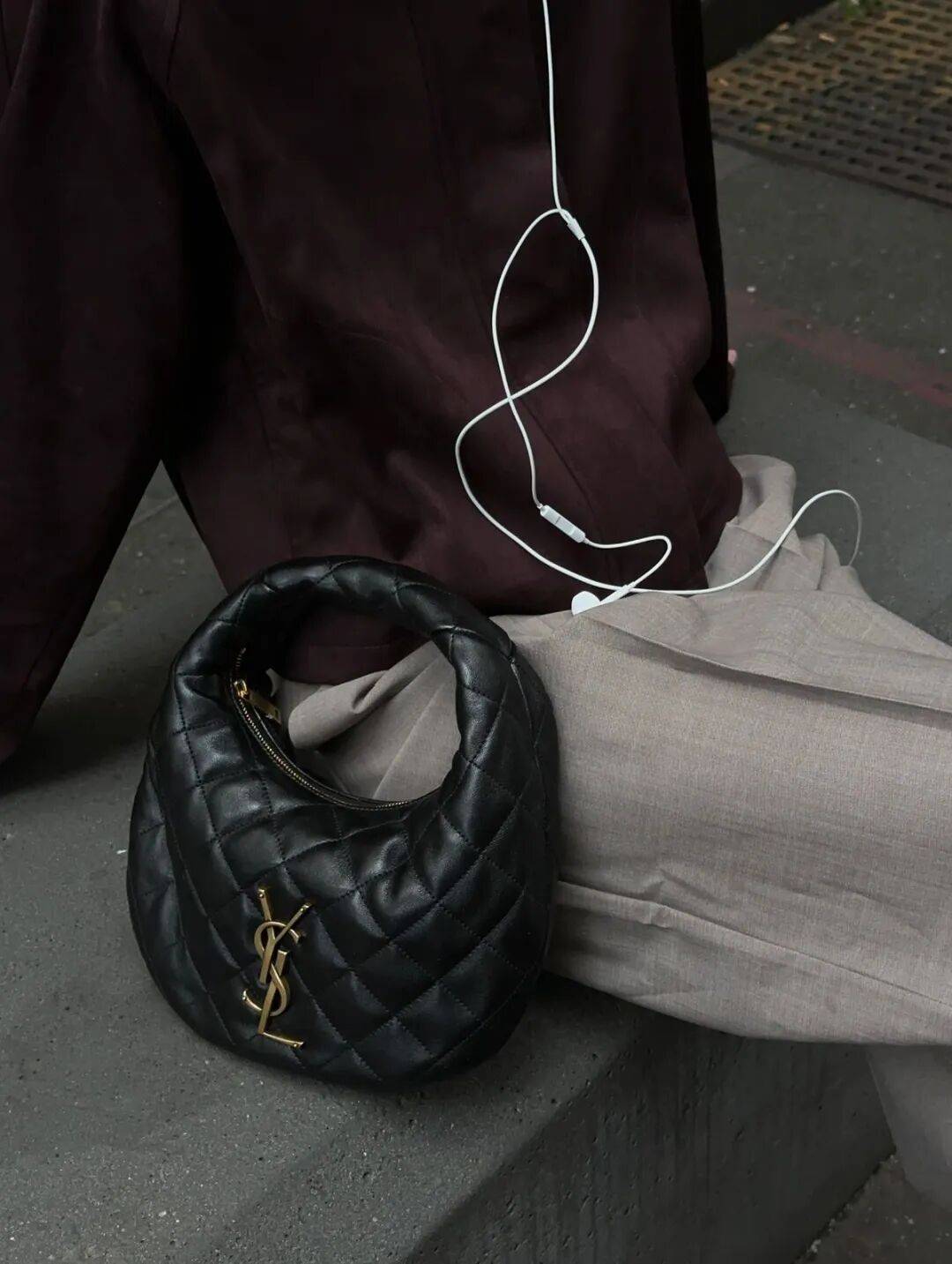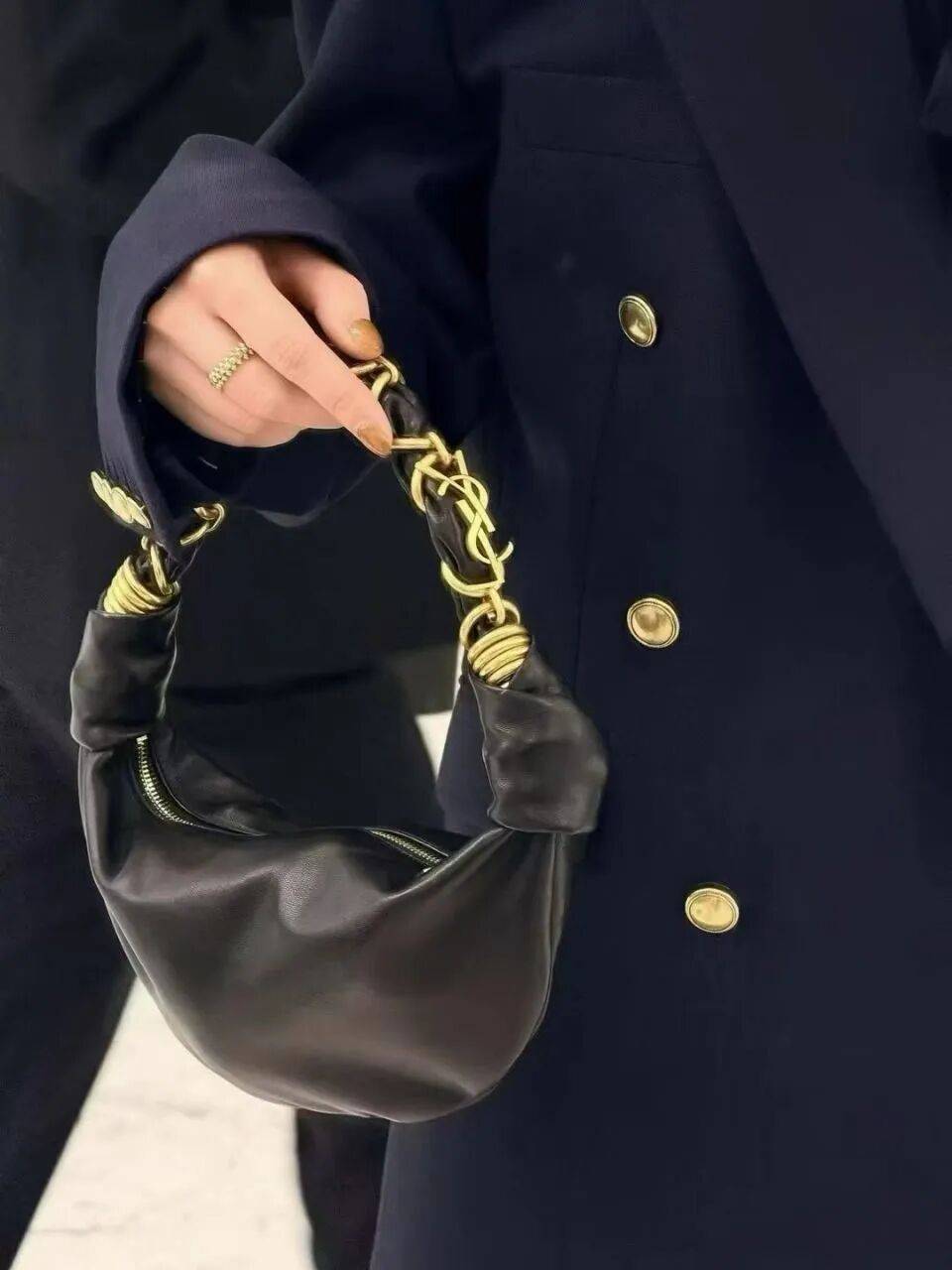 肩带一侧的链条设计很巧妙,YSL金属Logo藏身其中,精致得恰到好处。