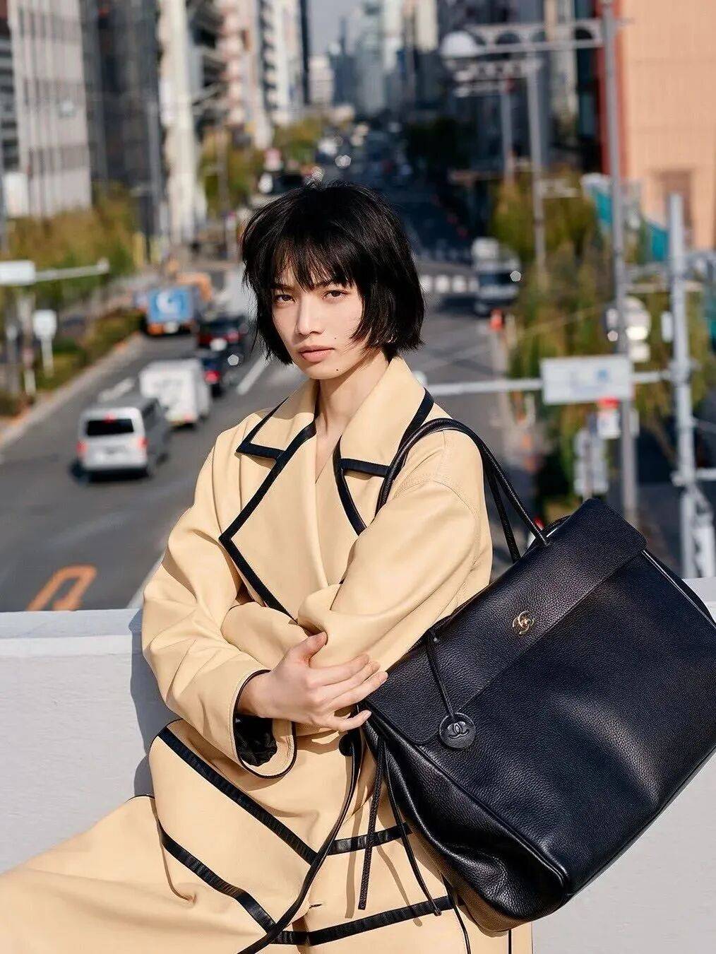 还是熟悉的轮廓,气质却悄然变酷了。大大的身,随性的轮廓,带着一股不羁的劲儿,气质立刻从优雅变得酷感十足。