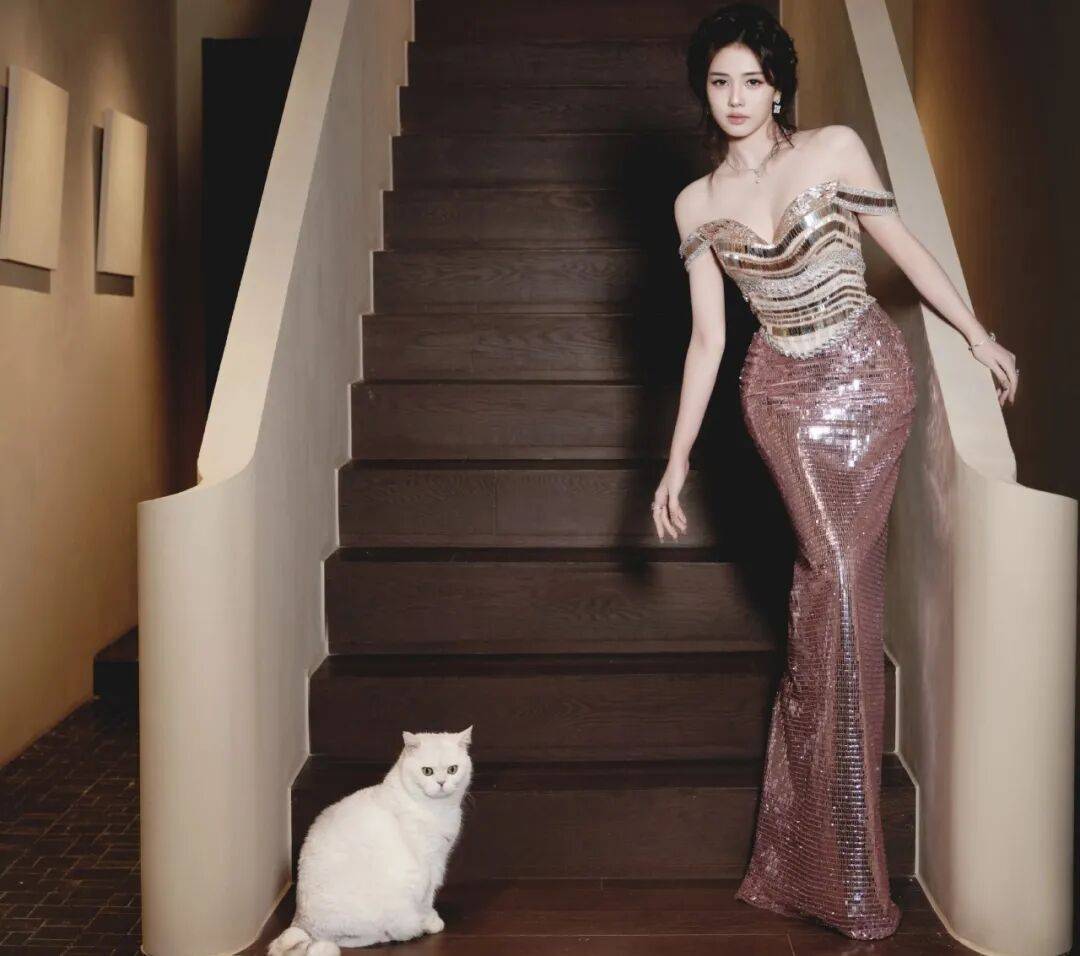 最后说说氛围和她的状态。这组照片拍的场景很有意思,有木质楼梯,有艺术雕塑,背景里甚至还出现了可爱的猫咪,整个就是那种豪门宅邸的感觉。『白鹿』的姿态也特别放松,不管是倚着墙好像在思考什么,还是扶着栏杆站着,都没有那种刻意摆拍的僵硬感。