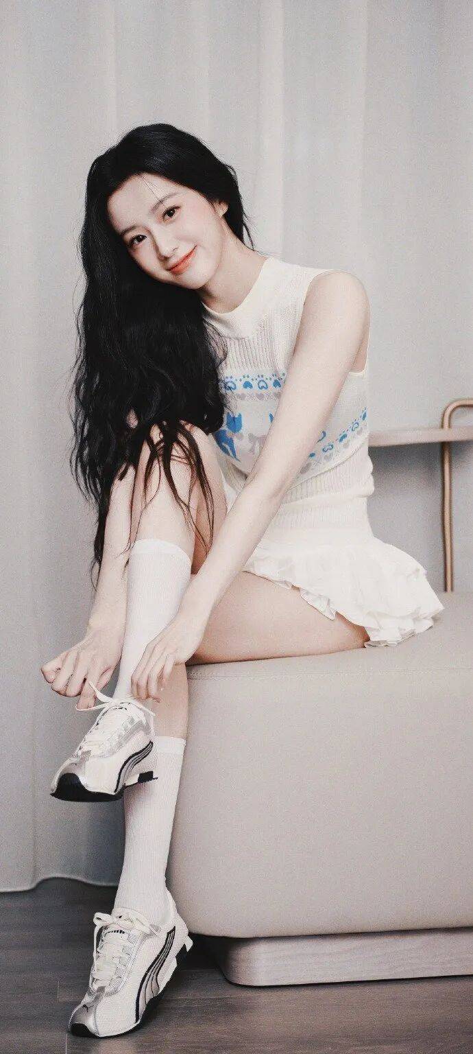 这种反差魅力的核心,在于她的“自然不做作”。甜的时候是发自内心的明媚,没有丝毫刻意;酷的时候也不是故作高深,而是带着少女特有的倔强与随性。就像私下被捕捉到的生活片段,她可以素颜朝天地吃着冰淇淋,也能认真钻研剧本角色,这种真实感让她的甜与酷都显得格外生动可信。