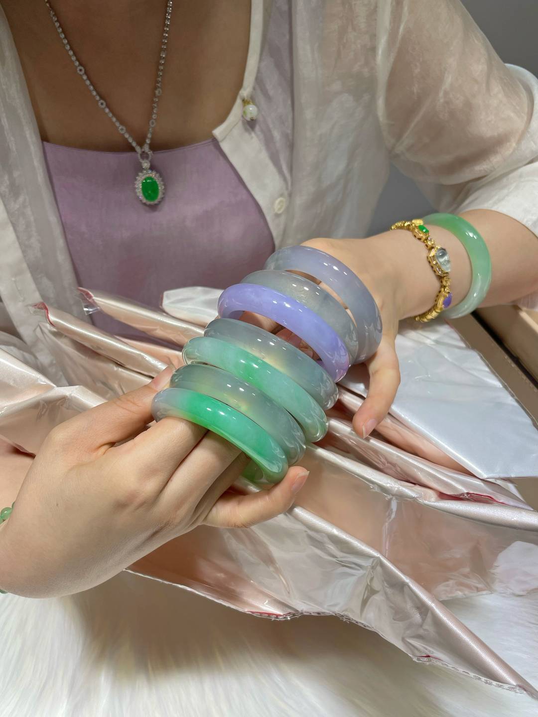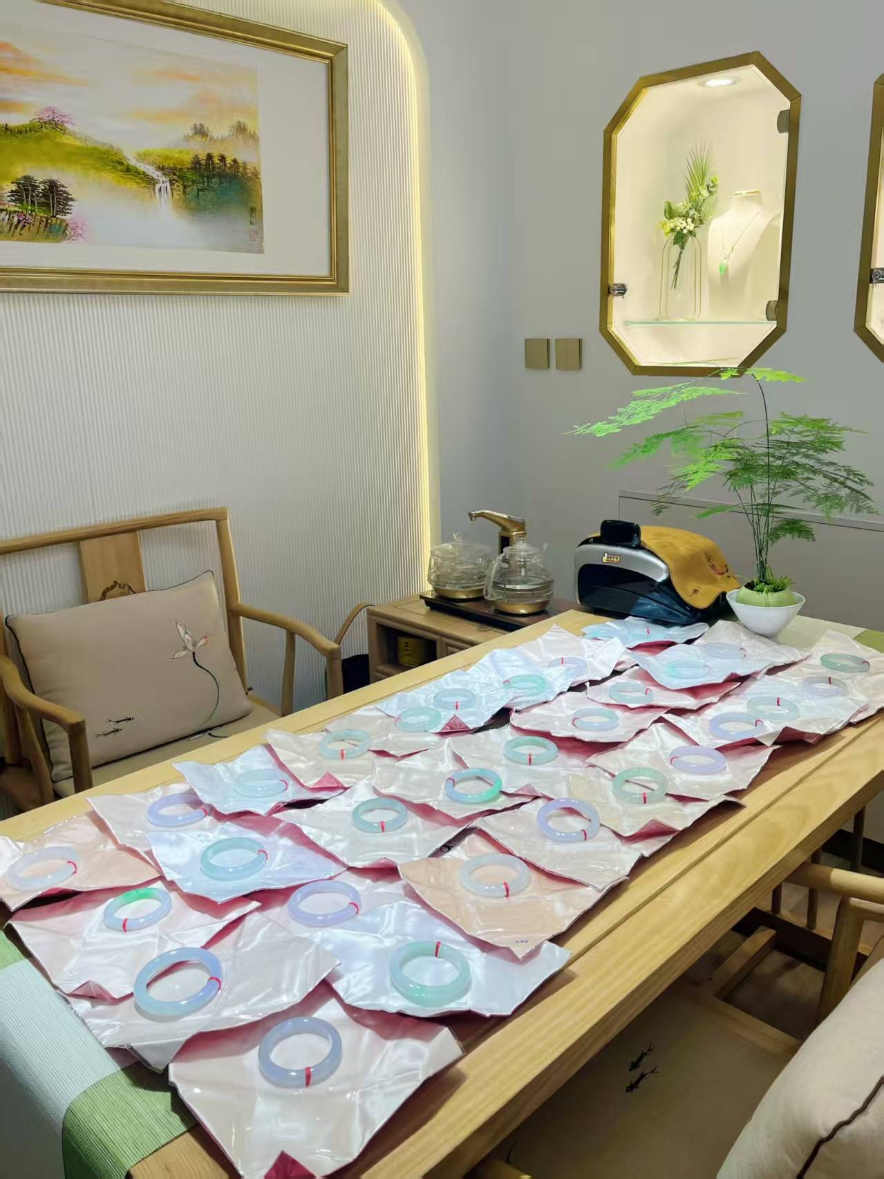 春全合的翡翠产品线非常丰富,从王牌产品翡翠手镯,到精致的吊坠、戒指💍、耳饰等,应有尽有。特别是手镯,这里被客人们称为“种水手镯专业户”,常年备货近百条,圈口齐全,总有一款适合你。