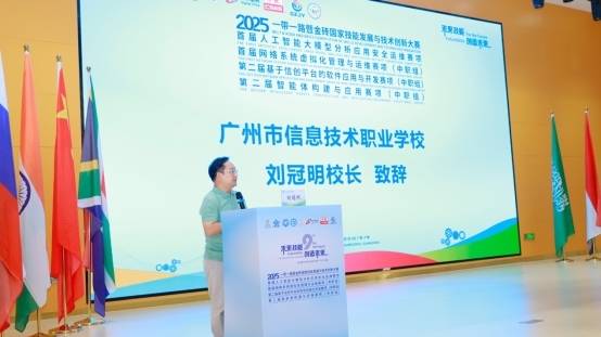 广州市信息技术职业学校刘冠明校长在致辞中表示,本次赛项聚焦大模型安全运维这一前沿方向,对推动产教融合、促进专业建设具有重要意义。学校期待通过承办此类高水平赛事,与行业企业共同构建支撑大湾区数字技能人才培养的实践平台,学校将持续支持人工智能领域人才培养。