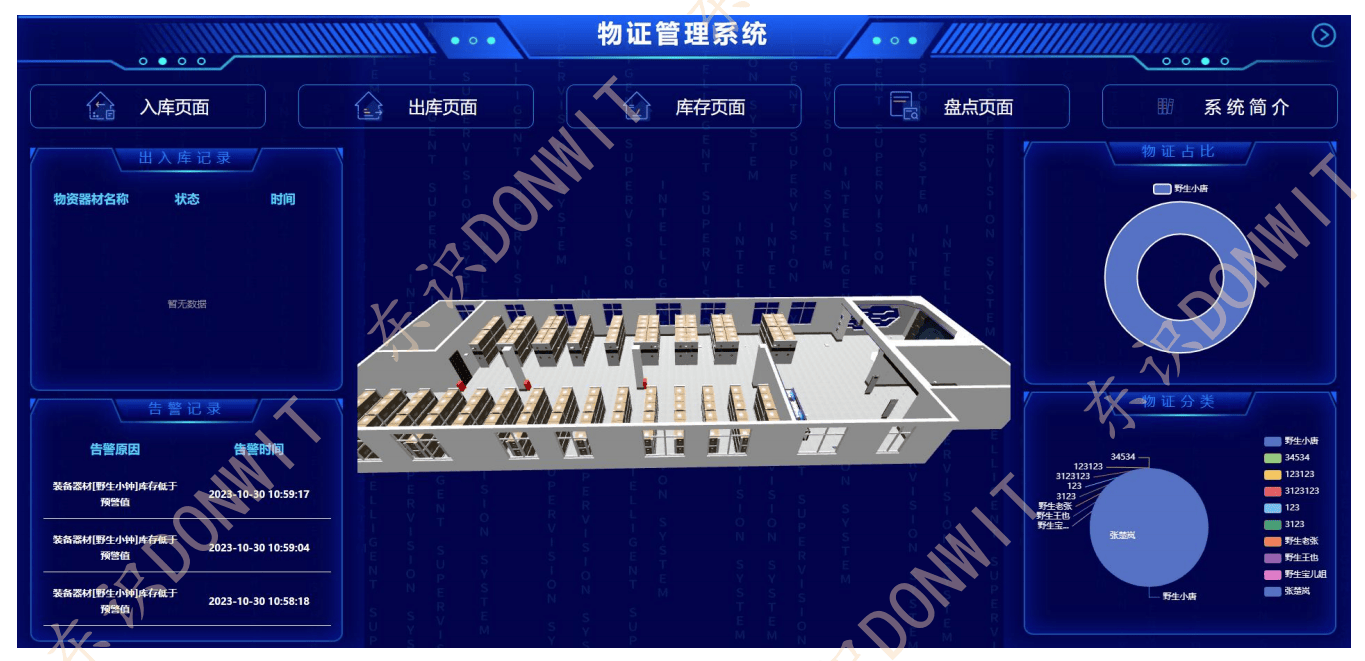 本系统基于物联网RFID射频识别技术,安防技术,数据分析技术和分区管理理念, 安装在公安局、检察院等执法部门刑事诉讼涉案财物保管室,从接收、登记、入库、核查、办案支持到移转的完整流程,降低了涉案财物可能存在的损毁或灭失风险,规范司法行为,支持办案。