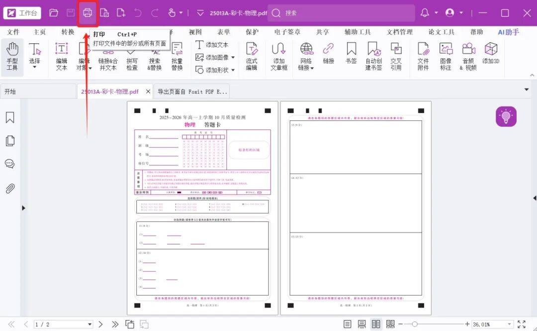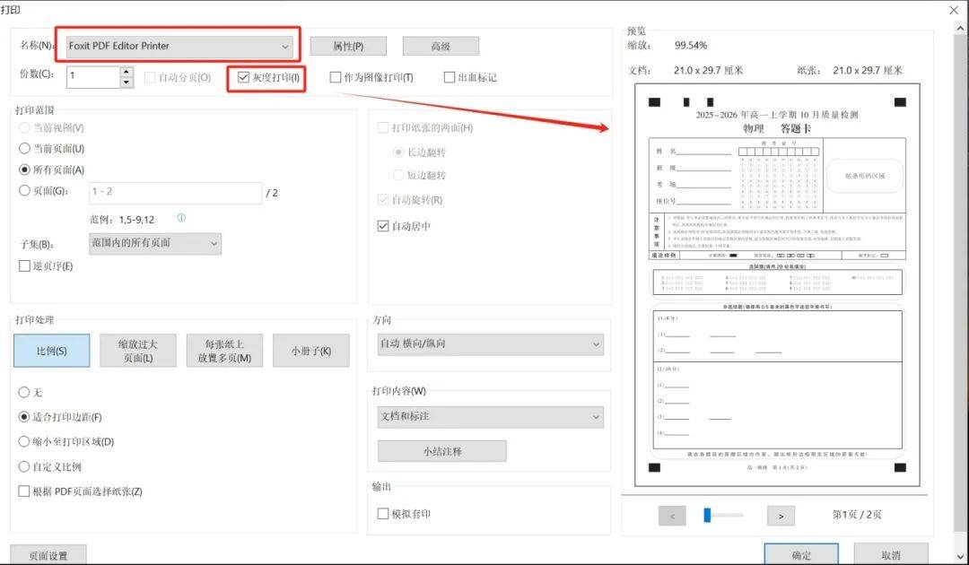 01 使用虚拟打印机🖨️灰度打印我们打开一份PDF文档,点击顶部打印按钮。在打印设置中,打印机🖨️名称选择虚拟打印机🖨️Foxit PDF Editor Printer,勾选“灰度打印”,我们可以从右侧看到预览效果。