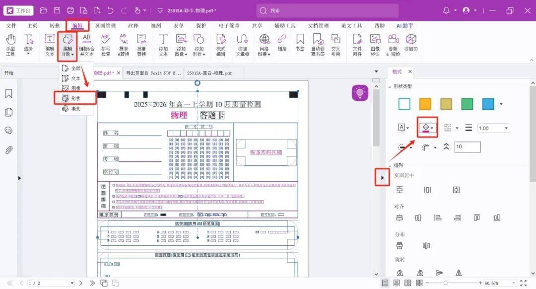 如果发现文字被转为形状,可以点击“编辑”→“编辑对象”→“形状”,点击页面按住键盘Ctrl+A全选页面中的形状,再打开右侧格式面板,将所有形状的填充色改为黑色。