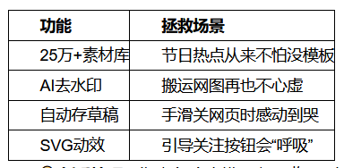 需要同时做H5海报(活动招募/新品发布)它的复古信纸、手绘边框堪称文艺天花板,但AI功能弱,复杂排版得手动调半天。