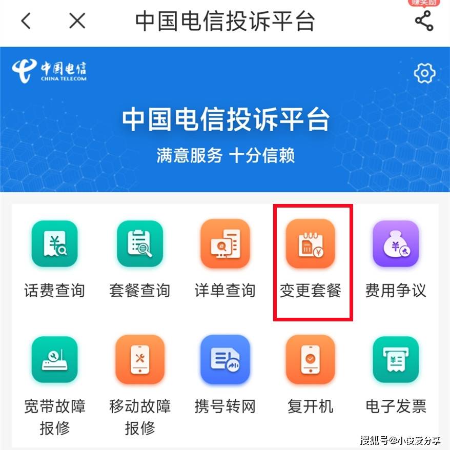 咱们首先呢,找到你手机号对应的运营商APP,像我的是电信。进来之后,咱们直接在首页搜索我的投诉点,我要投诉。