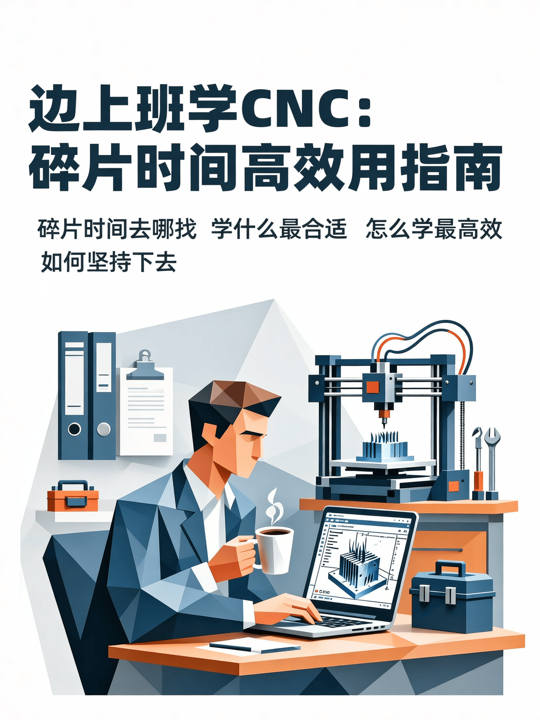 学CNC的碎片时间不用贪多,每天坚持一点就够。每天花两个小时上下班,有什么学习方式可以利用的?最关键的还是尽可能保证在碎片时间内也能完成一个行为的闭环。