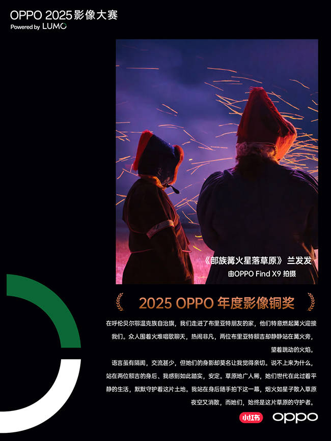 当镜头对准生活,影像便有了温度。从本次大赛的鲜活作品到小红书上的创作热潮,2025年的移动影像已超越“清晰记录”的范畴,成为承载情感、留存记忆的重要载体。作为移动影像前沿技术探索者,OPPO产品持续在技术上进行创新和突破,更以技术赋能创作灵感,让每一份真挚情感都被清晰定格,每一个生活瞬间都能成为永恒。