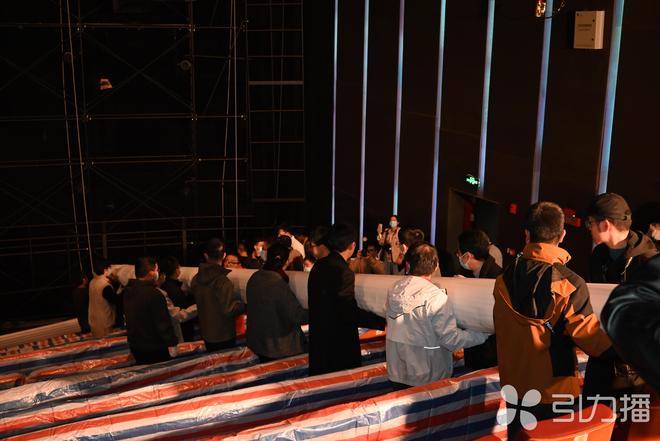 巨幅幕布需要众人托举。 苏报融媒记者 王敏悦/摄
