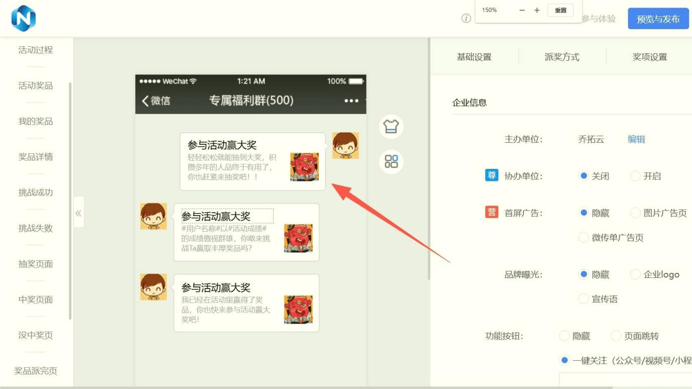 接下来,你就可以让客户玩游戏抽奖了: