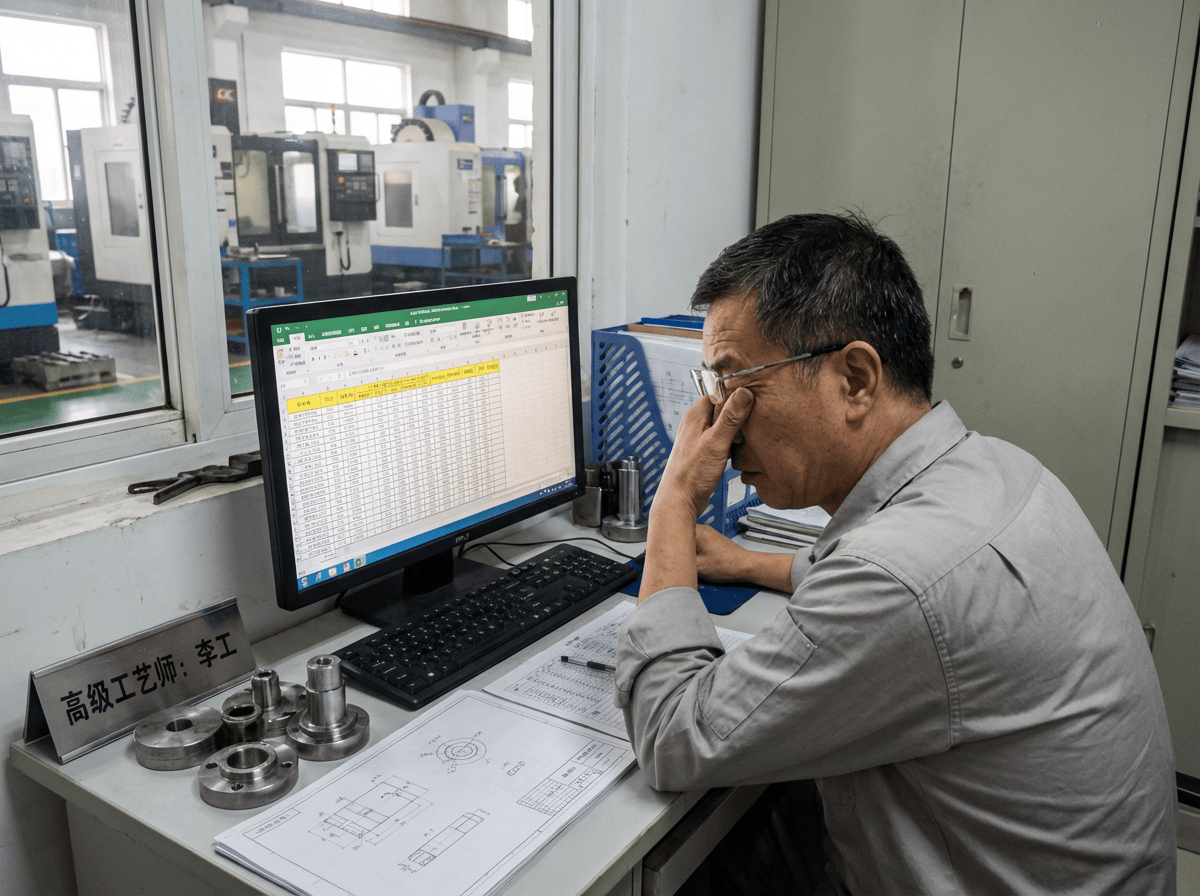 而在办公室里,企业最懂工艺、薪资最高的资深『工程师』——那些本该在攻克技术瓶颈、优化刀路轨迹的核心大脑——此刻却“被困”在电脑屏幕前,机械地在Excel表格里通过行列转换,反复计算材料重量和工时。