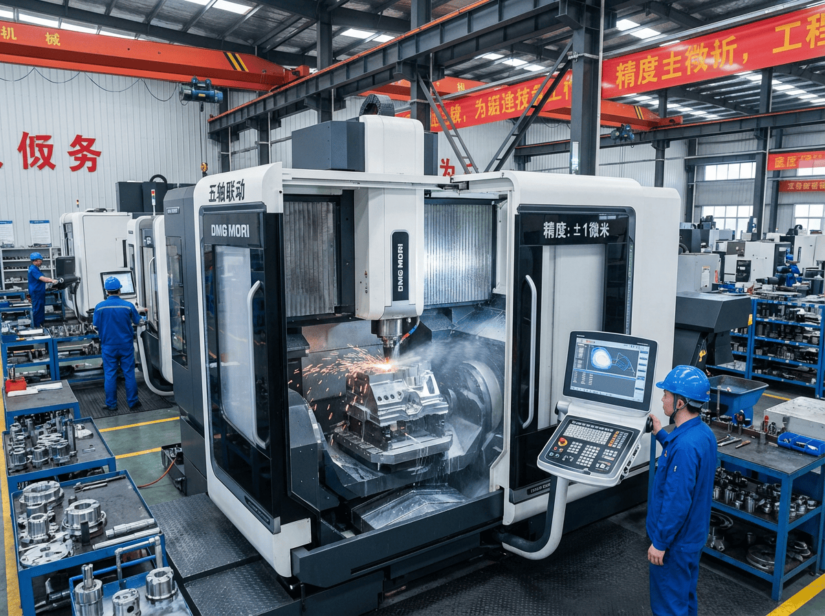 车间里,五轴联动的顶级设备正在切削着微米级精度的工件