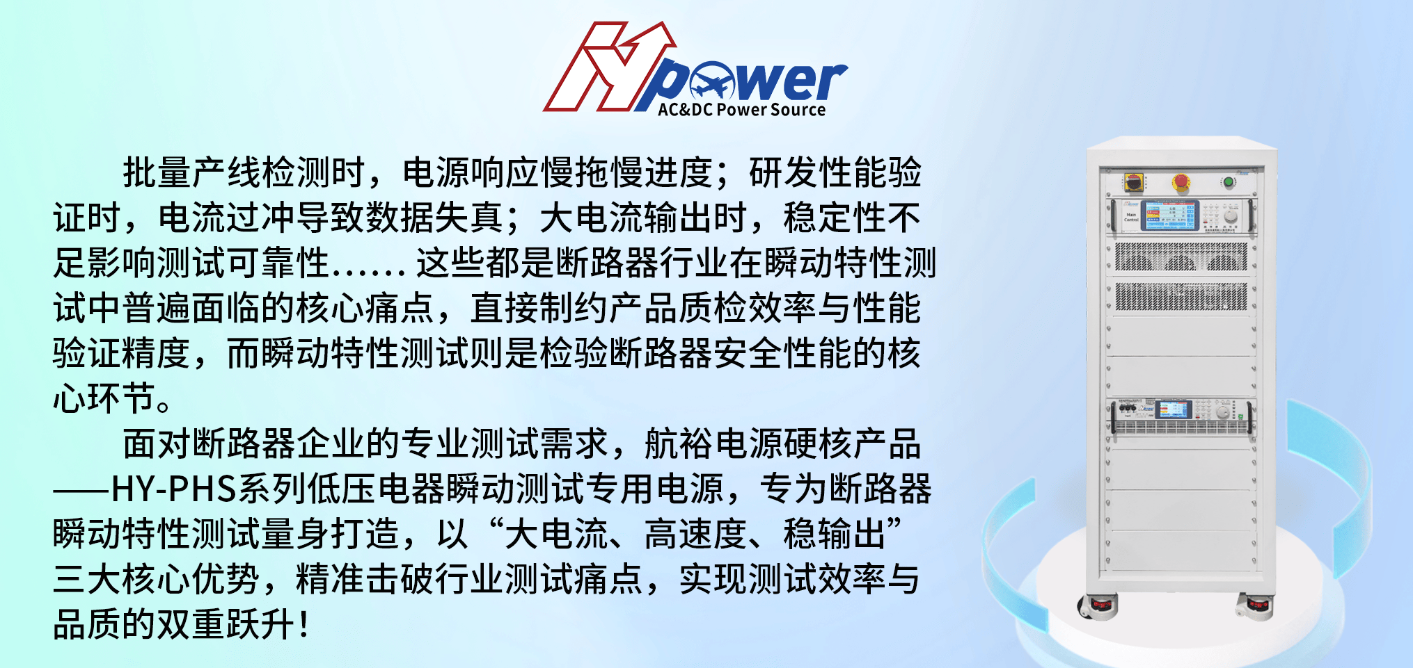 航裕电源产品推荐航裕电源HY-PHS系列 低压电器瞬动测试专用电源,不仅完全契合客户需求,更在关键指标上实现跨越式突破,成为企业测试工作的“得力助手”!