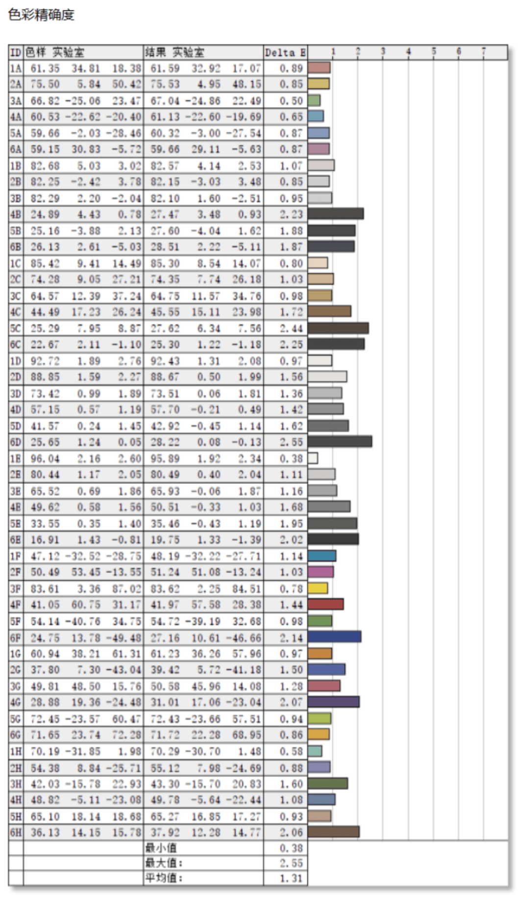 在色彩准确度的测试中,技嘉M27Q2 QD ICE显示器结果为平均ΔE值为1.31,最大ΔE为2.55。一般来说平均ΔE<3,人眼就基本上分辨不出色彩的差异,技嘉M27Q2 QD ICE的色准完全可以媲美一些专业显示器。