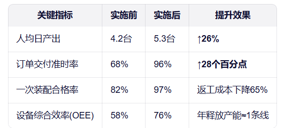 异常自-动预-警(如缺料、超时),响应速度从小时级缩短至分钟级。