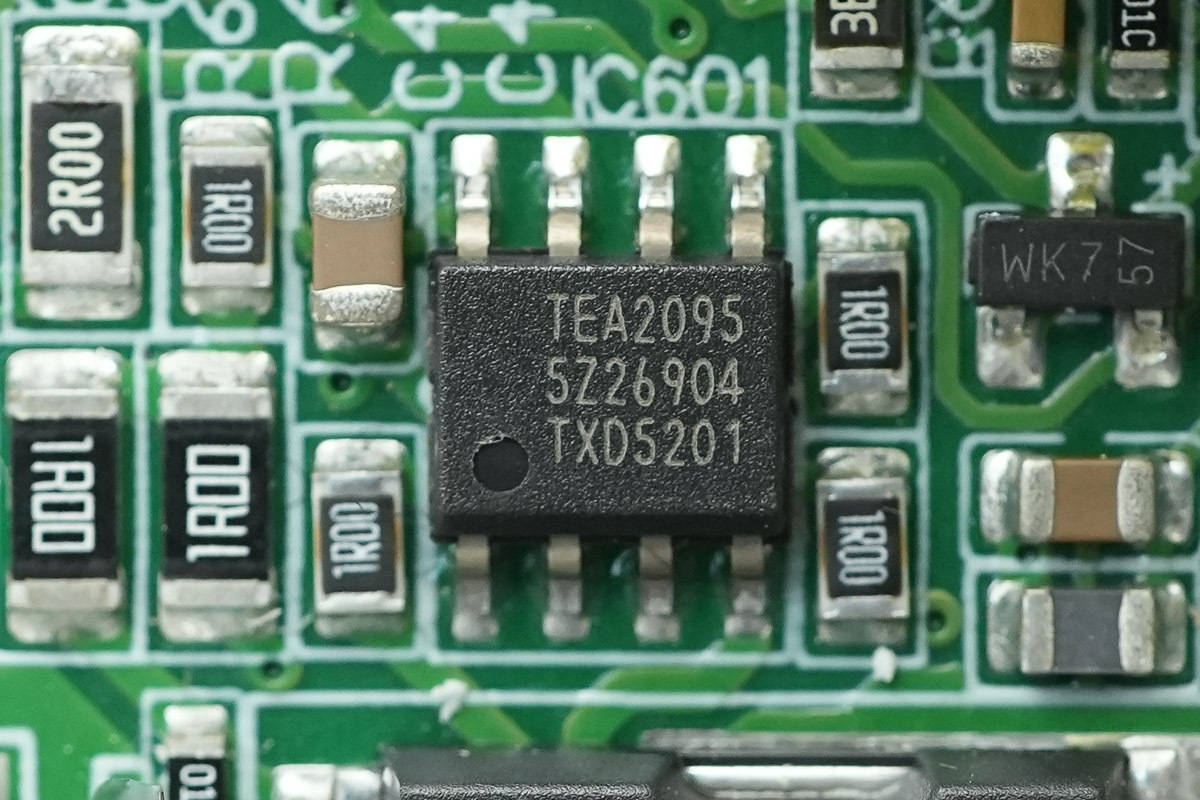 同步整流控制器来自恩智浦,型号TEA2095,是一颗双路同步整流控制器,内置两个驱动器,可以同时驱动两个同步整流管,并支持独立工作,适用于LLC谐振电源使用,采用SO8封装。