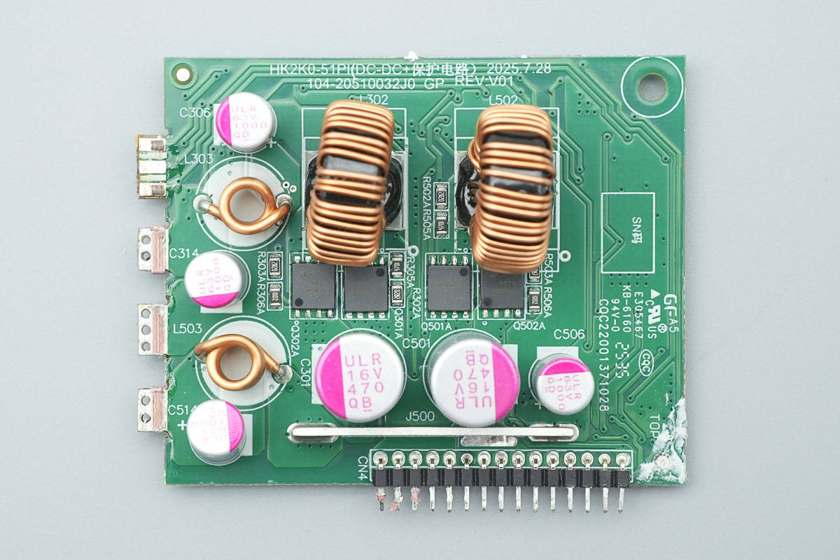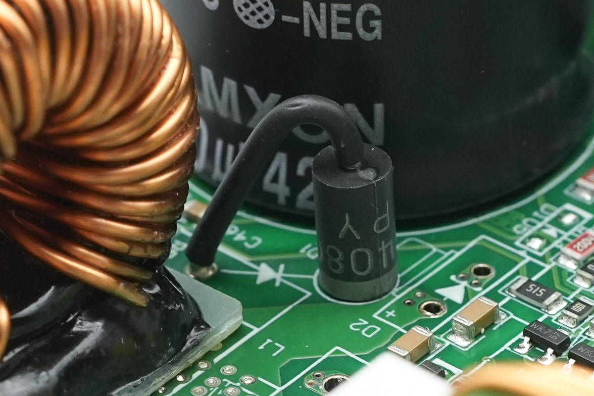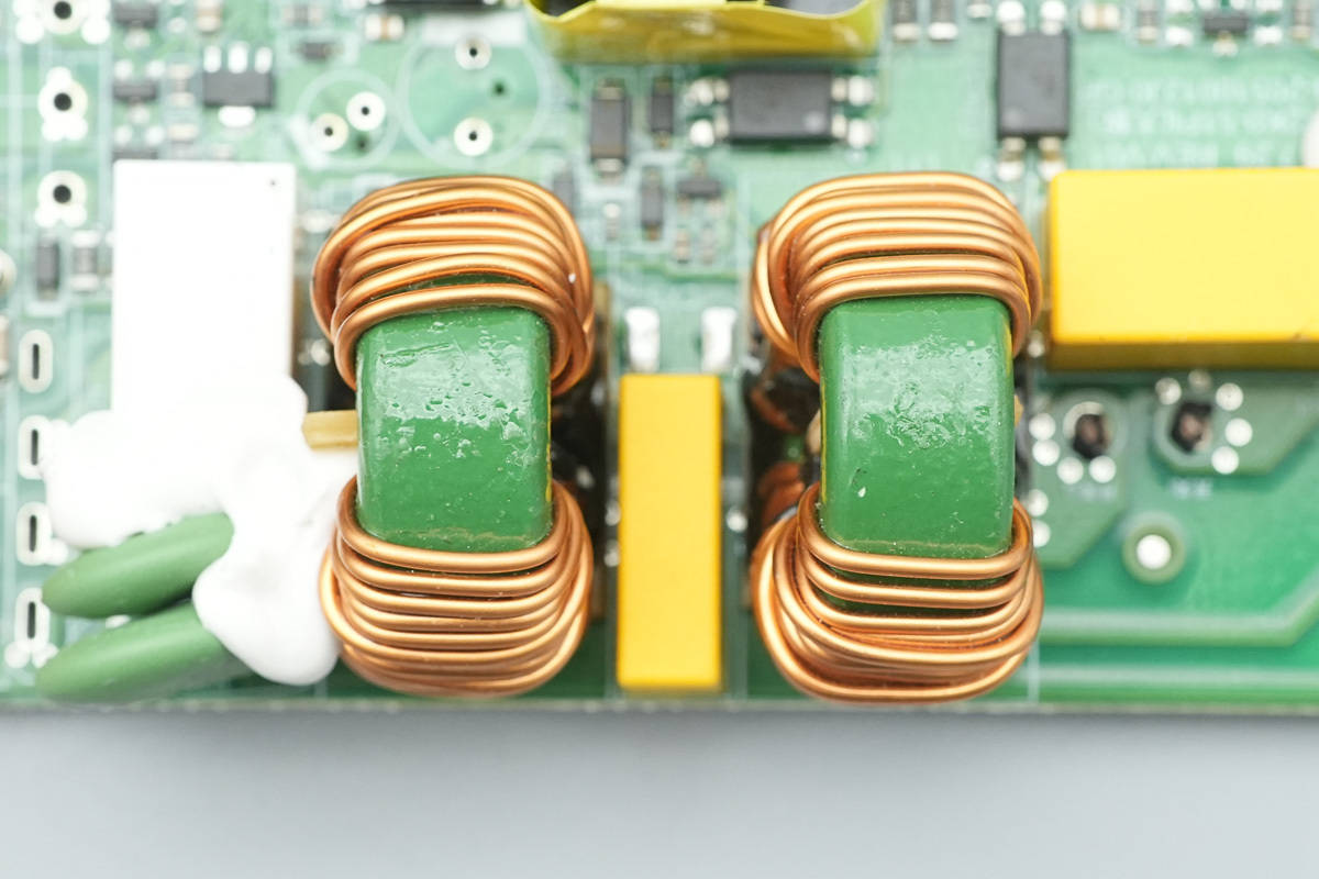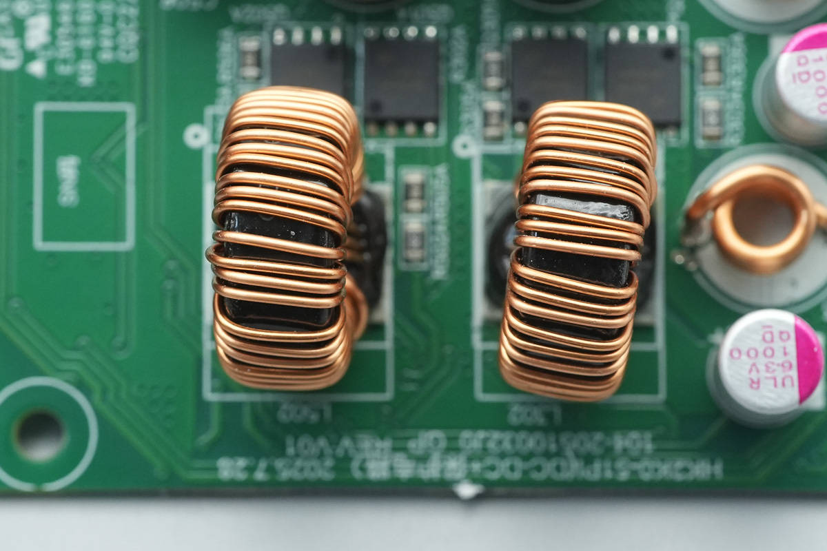 PFC升压电感采用漆包线绕制,底部设有电木板绝缘。