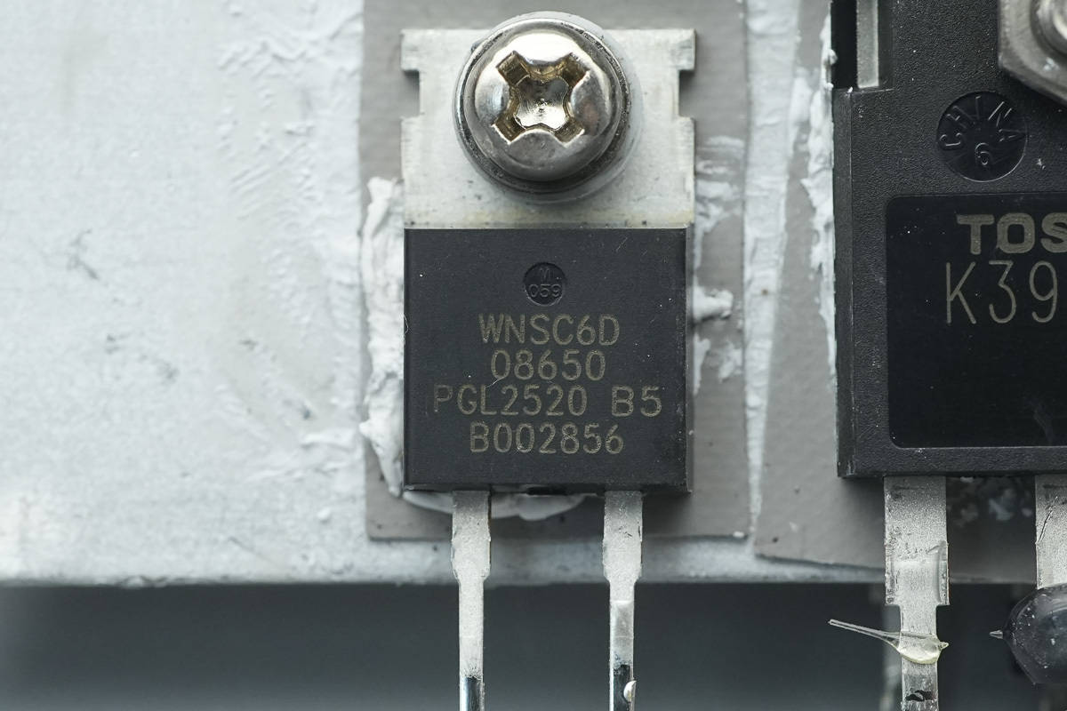 PFC整流管来自瑞能,型号WNSC6D08650,为碳化硅二极管,规格为650V8A,采用TO220-2L封装。