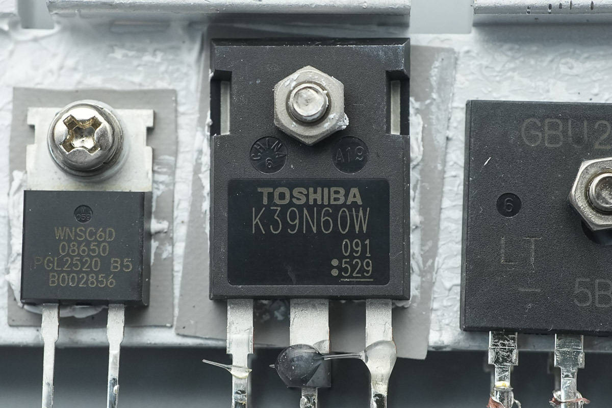 LLC开关管采用东芝TK39N60W,与PFC开关管型号相同。