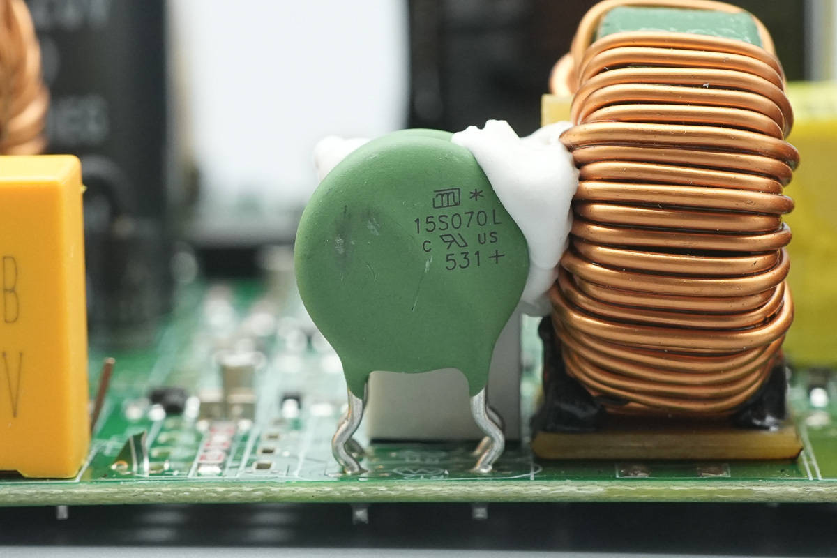压敏电阻来自久尹,型号14N561K,用于吸收过压浪涌。